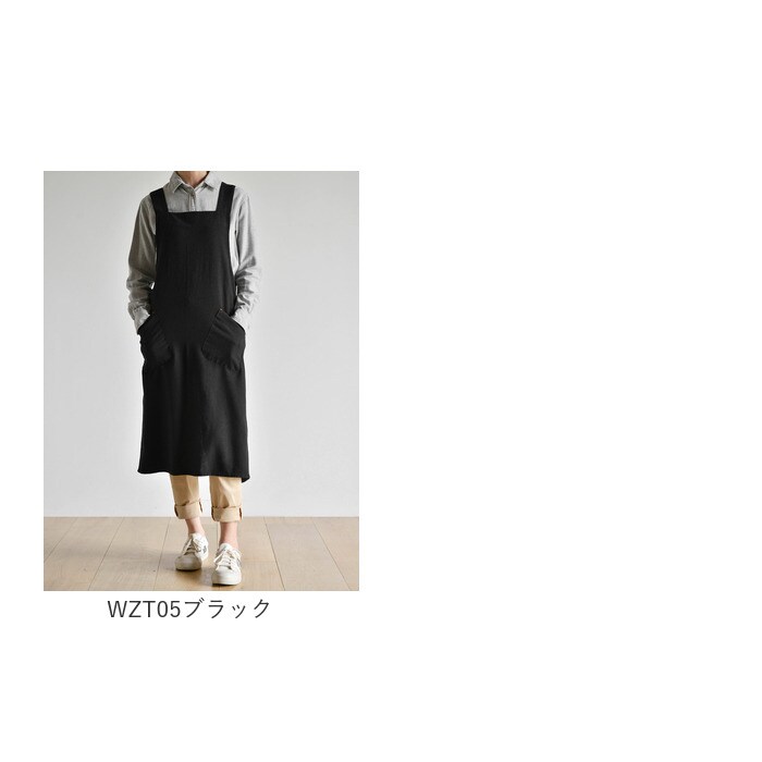 ロング丈 キッチン エプロン ポケット付き【WZT05ブラック】
