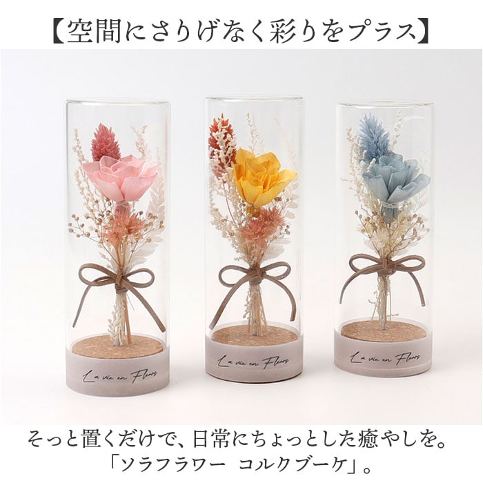 | 商品説明 | 【空間にさりげなく彩りをプラス】そっと置くだけで、日常にちょっとした癒やしを。「ソラフラワー コルクブーケ」。【手作業で仕上げたソラフラワー】天然のソラの木を天日干しさせ、薄くシート状に剥いだものを、手作業でお花の形に♪(※)日本でアレンジしております。100%天然素材のため、個体差があります。【エシカルでサスティナブル】タイの水田の生える生命力の強いソラの木を、無駄なく美しく変化させた、SDGsアイテム。【ドライフラワーよりも華やかに】着色ができるソラフラワー。美しい色合いを生み出すことができ、より彩りがアップ。【ナチュラルかつ洗練された雰囲気】細身のガラスドーム内に、ソラフラワーのアレンジメントを。コルクとの相性も抜群。【お手入れ不要の枯れないお花】枯れずに生花より長く楽しめて、水やりなどのお手入れも必要なし!気軽に取り入れられる◎【大切な方への贈り物にもぴったり】場所を選ばないスリムサイズ&置くだけでおしゃれ♪ギフトにも喜ばれるアイテム。 |