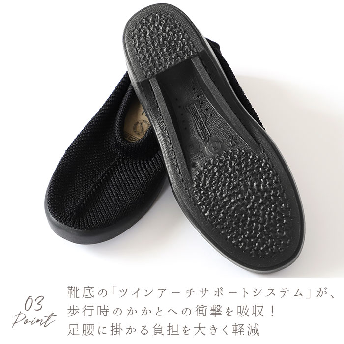 | 商品説明 | 人気の「ARCOPEDICO」から、タウンユースに履けるコンフォートシューズ「CLASSIC LINE STEPS」が新登場。「歩きやすく、疲れにくい」を追求するポルトガル生まれのシューズブランド「ARCOPEDICO」。アッパー部分には、ナイロン製のニット素材を採用。伸縮性に優れているので、包み込むように足にフィット!蒸れにくさも嬉しいポイント。履き口部分は広めのデザインでゴムが入っているから、脱ぎ履きがとっても楽ちん。インソールには吸汗性に優れた天然皮革、アウトソールは柔軟性のあるポリウレタンを採用。さらに靴底に縦に2本入ったライン「ツインアーチサポートシステム」が、歩行時の踵への衝撃を吸収!足腰に掛かる負担を大きく軽減。また、とっても軽量で持ち運びにも便利なので、外履きだけでなくドライビングシューズとしてのご使用もおススメ。発色が良いからカラーを選ぶ楽しみも♪お気に入りをチョイスして! |