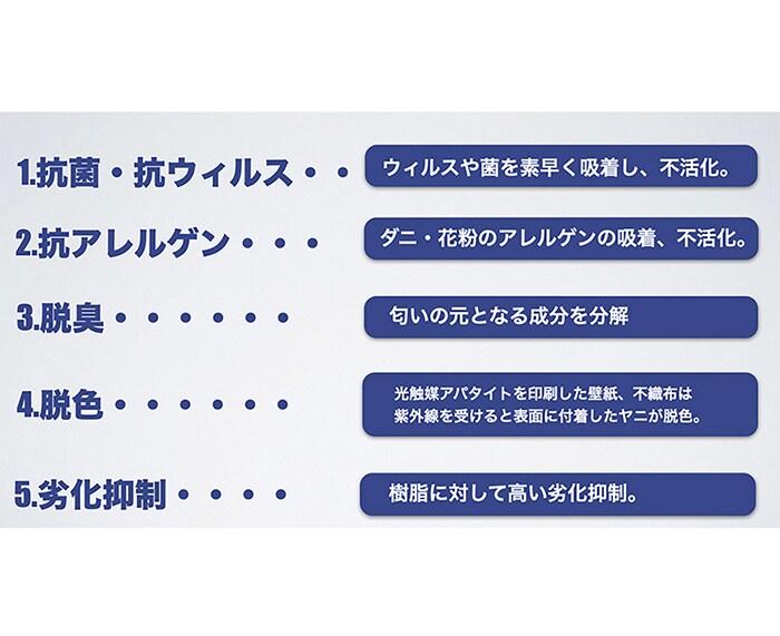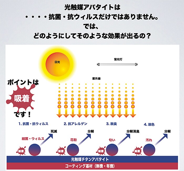 | 素材 | [シート]ポリカーボネイト/[表面加工」光触媒アパタイト |