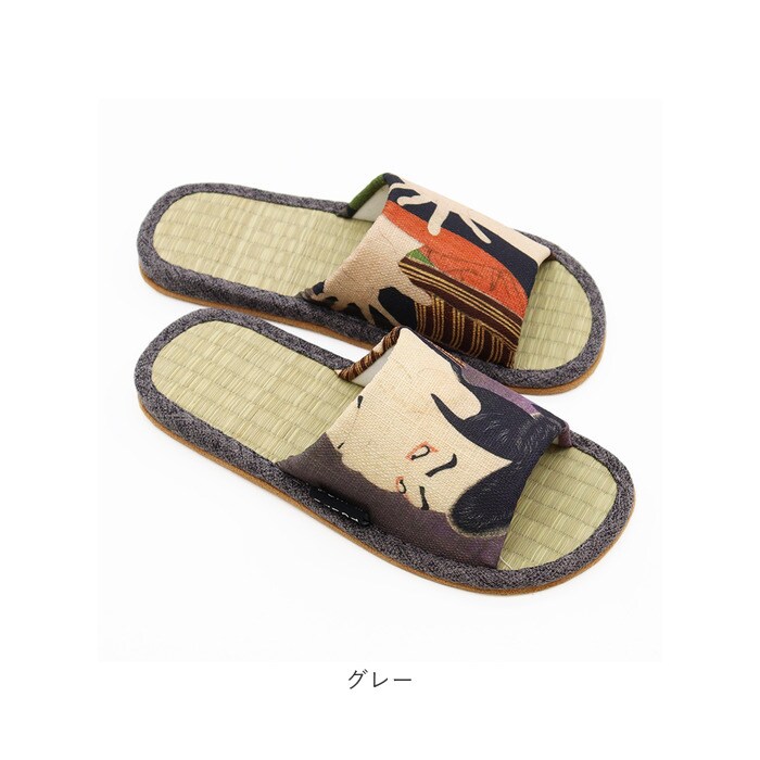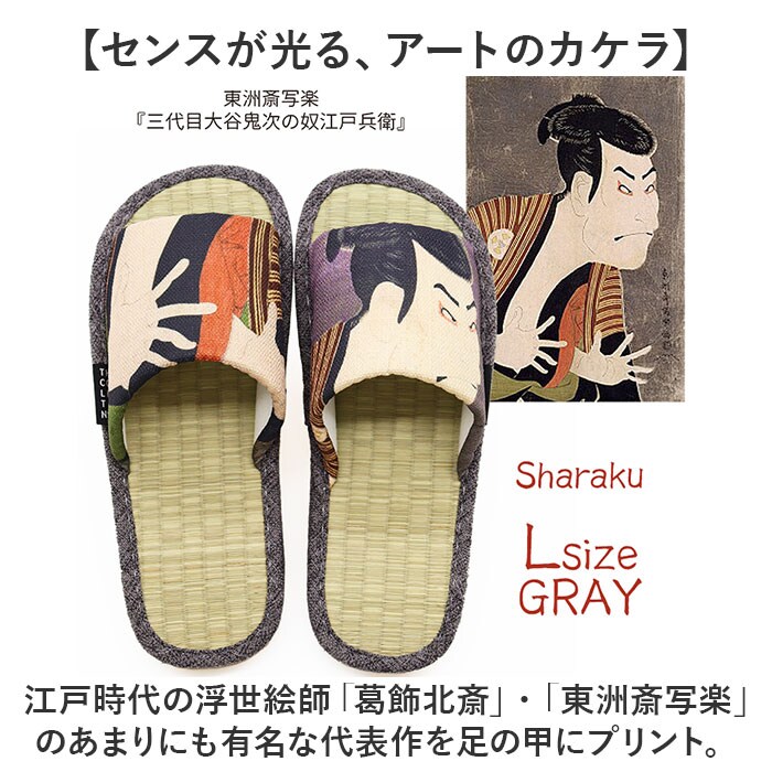世界の名画シリーズ 北斎 写楽 い草畳スリッパ【グレー】【Lサイズ】