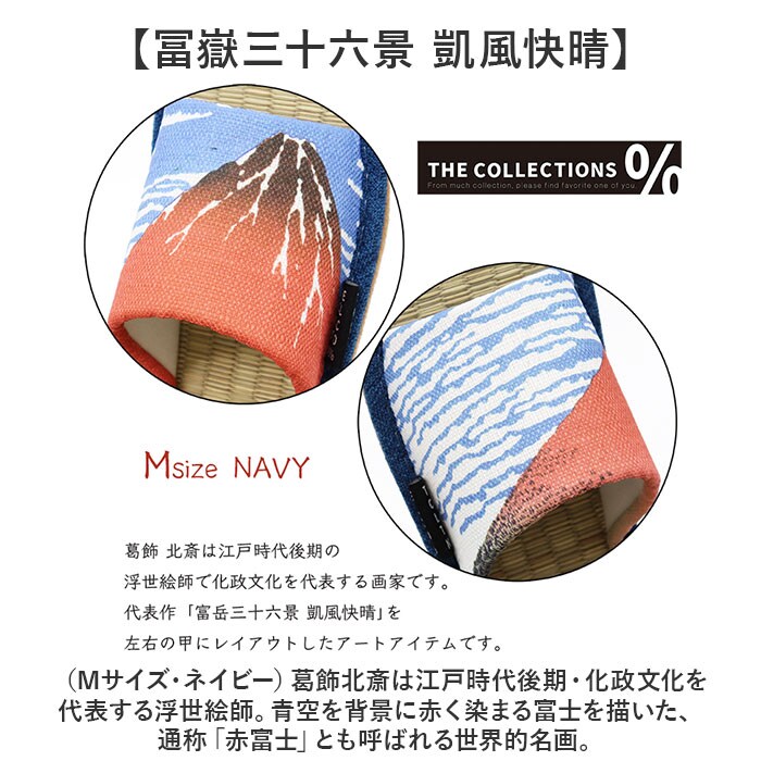 | 商品説明 | 【名画を優雅に纏う、小さな贅沢】日常に小さなワクワクを散りばめて、暮らしを楽しむ「世界の名画 北斎・写楽 い草畳スリッパ」【センスが光る、アートのカケラ】江戸時代の浮世絵師「葛飾北斎」・「東洲斎写楽」のあまりにも有名な代表作を足の甲にプリント。【まるで絵画のキャンバス風の質感】足の甲に程よい凹凸のあるブッチャー生地を使用し、絵画のキャンバス風の素朴な質感を表現。【天然のい草素材が足裏に涼やか】フットベッドには天然のい草を貼り、まるで素足のまま畳の上を歩いていような涼やかな感触。【スポッと履ける履き口形状】足の甲のベルトは、つま先がスッと入るゆったり余裕を持たせたデザインで、脱ぎ履きスムーズ。【オールシーズン、サラッと快適】つま先の開いたオープントゥスタイルなので、通気性がよく、蒸し暑さの気になる季節でも快適。【パタパタ音がしにくい底面加工】スリッパ底面はフローリングの上でも滑りにくく、静音効果のあるポリエステルスエードを採用。【ご家族でリンクコーデも◎】カップルやファミリーでお揃いにできるMサイズ&Lサイズの2サイズ展開。※Mサイズ(22.5cm~24.5cm)、Lサイズ(25.0cm~27.0cm)。カラーにより、お取り扱いサイズが異なります。【冨嶽三十六景 凱風快晴】(Mサイズ・ネイビー)葛飾北斎は江戸時代後期・化政文化を代表する浮世絵師。青空を背景に赤く染まる富士を描いた、通称「赤富士」とも呼ばれる世界的名画。【三代目大谷鬼次の江戸兵衛」(Lサイズ・グレー)東洲斎写楽は江戸時代中期を代表する浮世絵師。睨み上げるような江戸兵衛の眼差しに射抜かれる、インパクト抜群の一枚。【普段使いにも、来客用にも】存在感のあるアートワークが自慢の和モダンスタイル♪ご家族用にはもちろん来客用スリッパにも!【世界の名画シリーズ】世界の名画をモチーフにしたアート感溢れるビジュアルが魅力。アートを楽しむスリッパシリーズ。スリッパ両サイドの「THE COLLECTIONS %」の織ネームがアクセント。 |