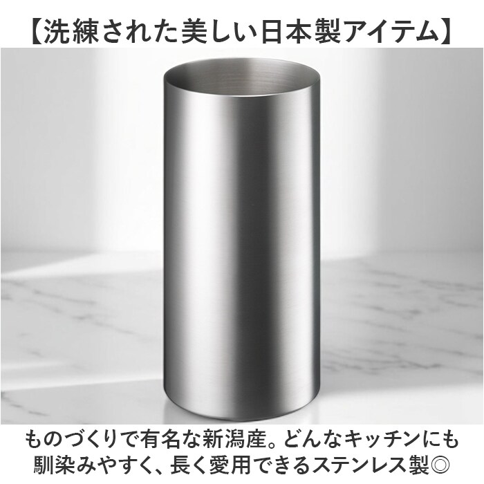 | 商品説明 | 【キッチンツールをコンパクトに収納】キッチン台をすっきり整頓できる、ツールコンテナ「EAトCO Tate」。【EATとCOOKINGをつなぐ♪】キッチンからダイニングへ、ボーダレスに楽しさや心地よさを演出してくれる道具を提案♪【スペースの限られたキッチンにも】スリムなサイズ感で場所を取らない!トングやヘラ、レードル等調理中に使う道具をひとまとめ。【外せて便利!シリコーンゴム底】底面はシリコーンゴム製。ツールを出し入れする際の音が気になりにくく、ストレスを軽減。【キレイに洗えてお手入れも簡単】底面は押すだけで外れる仕様。底に溜まった汚れを落としやすいのも嬉しいポイント。【洗練された美しい日本製アイテム】ものづくりで有名な新潟産。どんなキッチンにも馴染みやすく、長く愛用できるステンレス製◎【うれしい食洗機対応タイプ】家庭用食洗機の使用もOK。いつも清潔をキープでき、忙しい日々の味方。 |