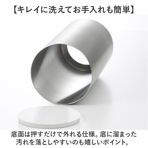 | サイズ | 【本体】 [縦]約15cm/[直径 ]約7cm 【底フタ】 [直径 ]約6.8cm/[厚さ ]約0.5cm ※サイズは当店計測の実寸サイズです。実際の商品ならびにメーカー表記サイズとは多少の誤差が生じる場合がございます。あらかじめご了承ください。 |