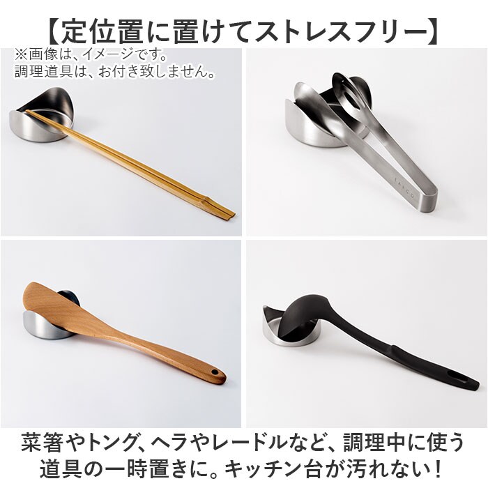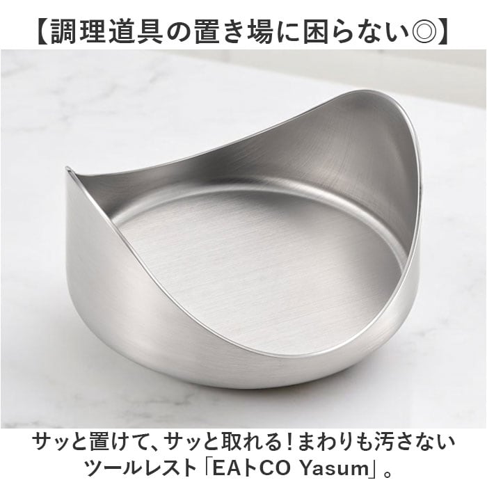 商品説明【調理道具の置き場に困らない◎】サッと置けて、サッと取れる!まわりも汚さないツールレスト「EAトCO Yasum」。【EATとCOOKINGをつなぐ♪】キッチンからダイニングへ、ボーダレスに楽しさや心地よさを演出してくれる道具を提案♪【定位置に置けてストレスフリー】菜箸やトング、ヘラやレードルなど、調理中に使う道具の一時置きに。キッチン台が汚れない!【洗練された美しいフォルム】ものづくりで有名な新潟産。鍋や鉄板料理の際、食卓に置いても馴染みやすくおしゃれ☆【お手入れもしやすいステンレス製】サビに強いステンレス素材。洗いやすく食洗機にも対応、いつも清潔をキープ。