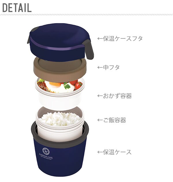 | 商品説明 | 多彩なメニューに対応!ランタスの保温ランチシリーズ。通常のお弁当メニューにも、どんぶりランチにも使い分けができる便利な2容器構成です。おかず容器本体を外せば1容器構成としても使用できます。コンパクトなフォルムでしっかり容量♪ステンレス断熱構造で温かさをキープ。スープ料理なども持ち運び可能。あったかごはんでおしゃれにカフェランチを楽しめます☆ごはん容量はお茶碗約1.2杯分。蓋を外せば電子レンジOK!食洗機で洗えるのでお手入れも簡単です。(※保温ケースはレンジや食洗機が使用不可です。) |