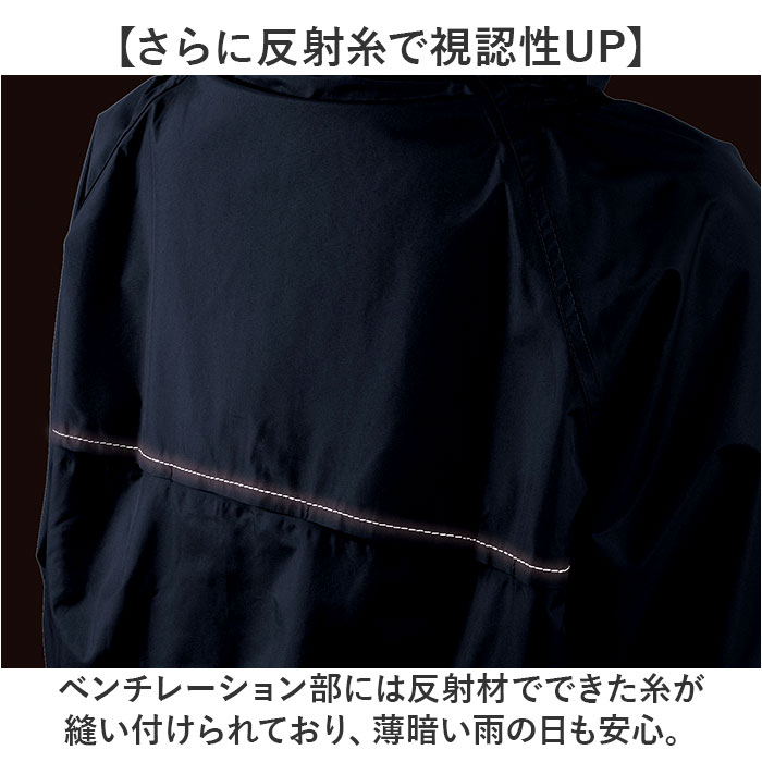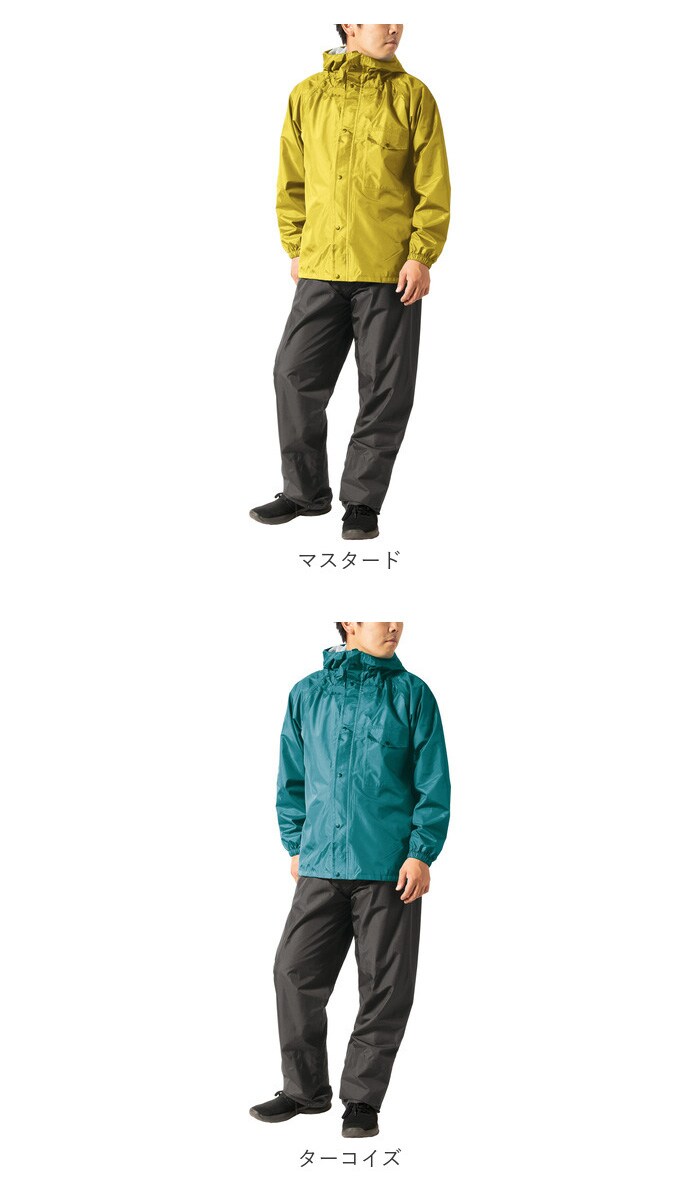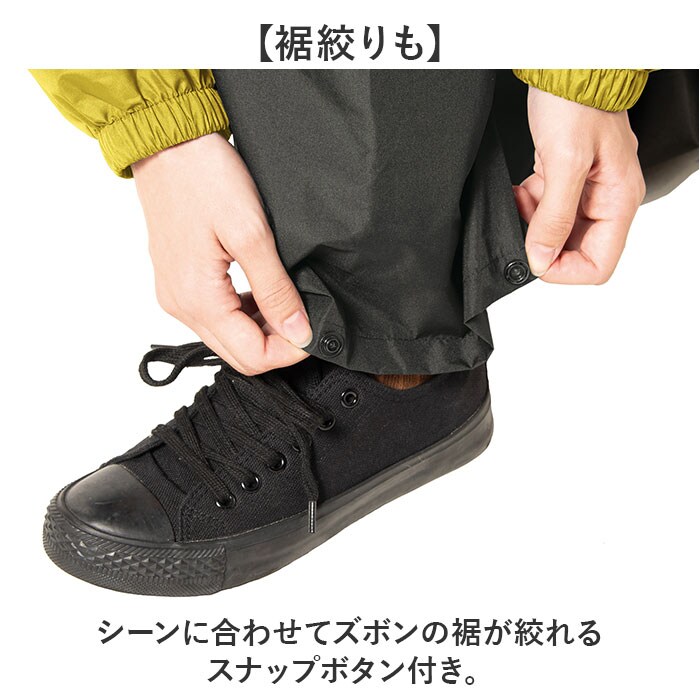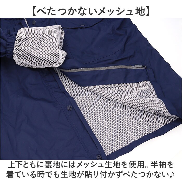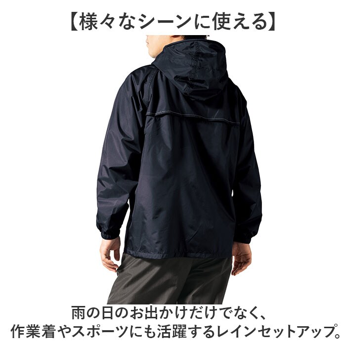 | 商品説明 | 【様々なシーンに使える】雨の日のお出かけだけでなく、作業着やスポーツにも活躍するレインセットアップ。【優れた耐水圧と透湿度】耐水圧10.000mmと透湿度5000g。強い雨にも負けない頼もしいアイテム。【ヘルメットもかぶれるフード】後の面ファスナーでサイズの調節が可能!ヘルメットを被ったままフードの装着ができるのも◎【べたつかないメッシュ地】上下ともに裏地にはメッシュ生地を使用。半袖を着ている時でも生地が貼り付かずべたつかない♪【背中はベンチレーション仕様】通気性を考慮したベンチレーション仕様。メッシュ素材を使用し、風通し抜群。【さらに反射糸で視認性UP】ベンチレーション部には反射材でできた糸が縫い付けられており、薄暗い雨の日も安心。【ポケット付き】作業時にメモやペン挿しに便利な胸ポケット付き。【裾絞りも】シーンに合わせてズボンの裾が絞れるスナップボタン付き。 |