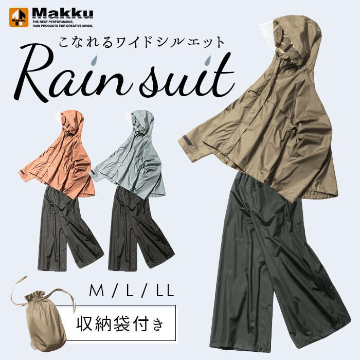 | サイズ | 【ワイドレインスーツ】 ・Mサイズ ・Lサイズ ・LLサイズ 【収納袋】 [縦]約27cm/[横]約11cm/[マチ]約11cm(収納袋は全サイズ共通です) ※サイズについての詳細は、サイズ表をご確認くださいませ。サイズは当店計測の実寸サイズです。実際の商品ならびにメーカー表記サイズとは多少の誤差が生じる場合がございます。あらかじめご了承ください。 |