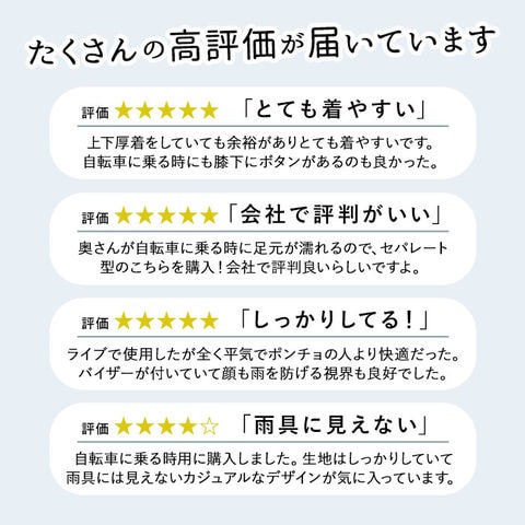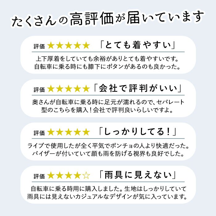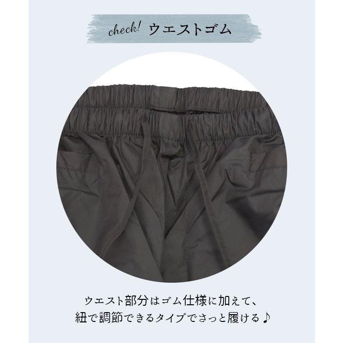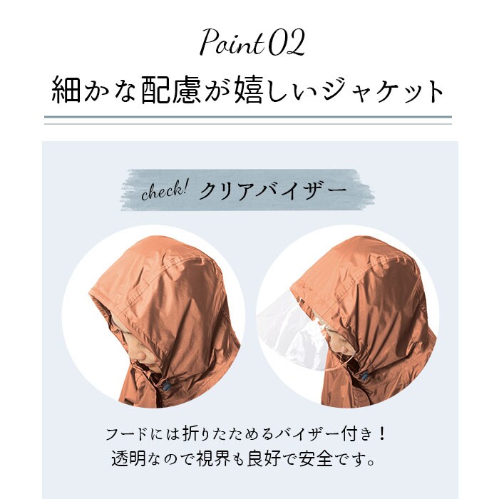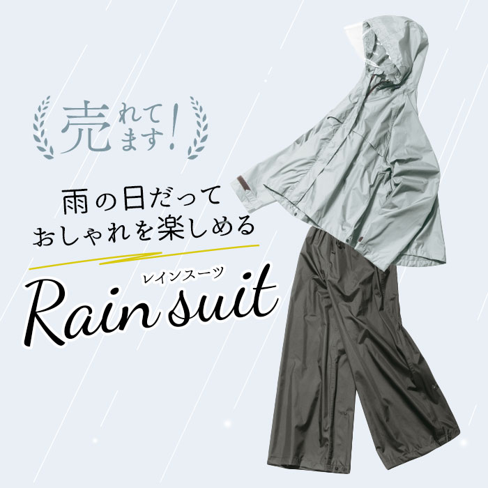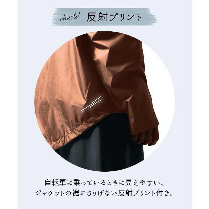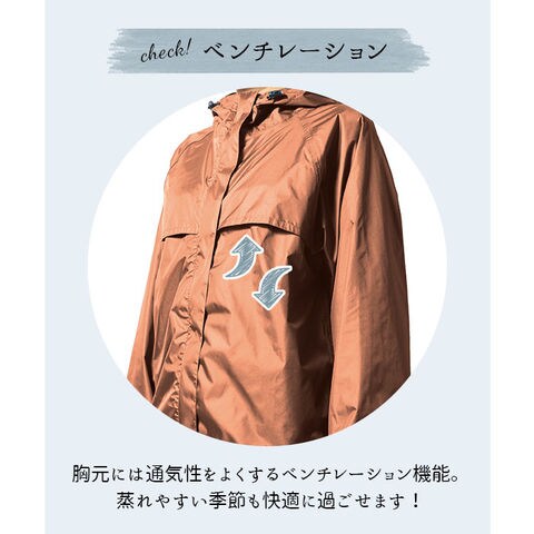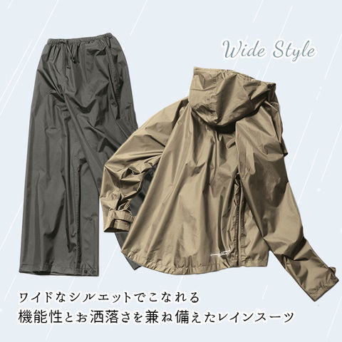 | 商品説明 | 洋服の上からも着やすいワイドシルエットが魅力的な上下セットのレインスーツが新登場。ジャケットの耐水圧は8.000mmH2o、パンツの耐水圧は10.000mmH2o。ジャケットのみ透湿度5.000g/m2-24h仕様。ジャケットの裾にはさいげない反射板のプリント付き。フードには雨から顔回りを守ってくれる折り込み式の透明ツバを装備。ジャケット内側にはオープンポケットが付いているからミニタオルをしのばせておくことができる。パンツはウエストゴム仕様に加えて紐で調節できるタイプ。ウエストゴム付近に鍵などの小物をしまっておけるポケットを両サイドに装備。ジャケットの袖口はマジックテープで、パンツの裾口はスナップボタンで幅の調節が可能。上下ともに軽量な着心地と持ち運びに便利な収納袋付きなのも嬉しいポイント♪ |