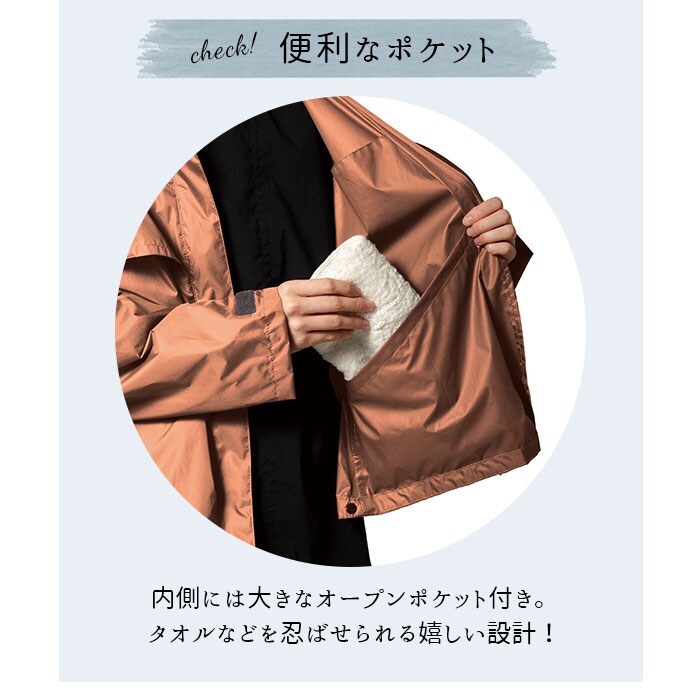 | 注意点 | ドライクリーニングとアイロンはお避けください。汚れは中性洗剤を使用し手洗いしてください。精密機器等をポケットに入れた場合、湿気等で破損の恐れがあります。ご注意ください。カメラやモニターの性質により、画像と実物の色の違いがある場合がございますのでご理解願います。 |