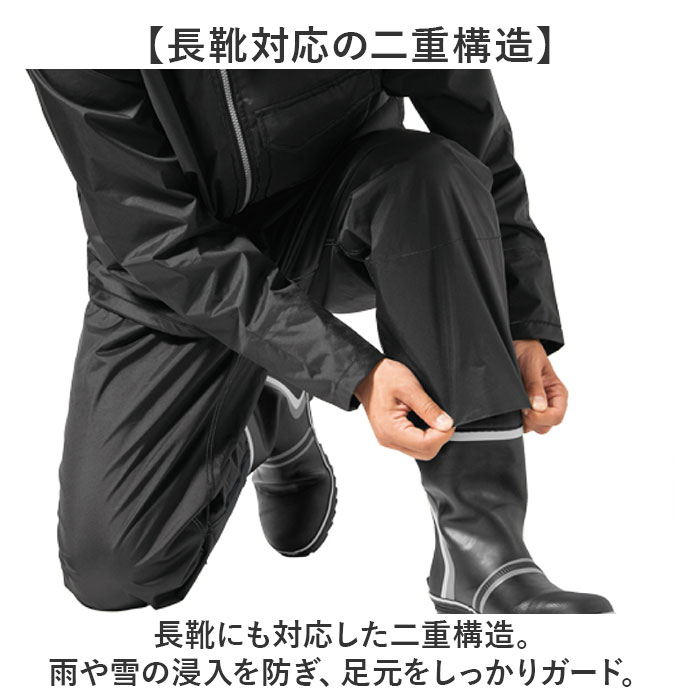 | 商品説明 | 【雨や雪を防ぐ!】快適で高機能なレインドロップカバーパンツ【長靴対応の二重構造】長靴にも対応した二重構造。雨や雪の浸入を防ぎ、足元をしっかりガード。【環境に配慮した撥水加工】有機フッ素化合物を使用しない環境に配慮した撥水剤を採用。安心して使える。【快適な通気性】ウェア内部に溜まった空気を外部に放出し、膨らみを抑えるハメト付きで快適。【さわやか裏メッシュ付き】裏面にメッシュ素材を使用。湿気を逃がし、長時間の着用でもさわやかな着心地。【防水性抜群】縫い目の裏側には防水テープ加工を施しているので、水の侵入をしっかり防止。【高耐水圧10000mmH2O】耐水圧10000mmH2Oで、強い雨や雪にも対応。悪天候でも安心して使用できる。【足首部分のボタン調整】足首部分はボタンで調節可能。サイズ調整が簡単で、快適なフィット感を提供。 |