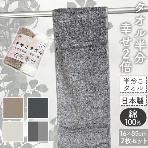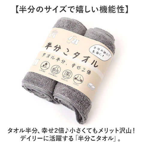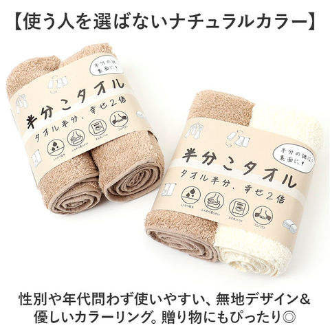 | 商品説明 | 【半分のサイズで嬉しい機能性】タオル半分、幸せ2倍♪小さくてもメリット沢山!デイリーに活躍する「半分こタオル」。【スリムでバツグンの吸水性】通常のフェイスタオルの約半分サイズ。ふんわり柔らかく、優れた吸水力と速乾性が魅力。【家族みんなで使い分けできて清潔】タオルハンガーに2枚掛けOK。家族や来客用など、使い分けが可能。【洗濯や乾燥時間、スペースも半分こ】通常サイズの半分の量や時間で洗濯完了!干したり収納する場所も省スペース。【お肌に優しい日本製綿100%】チクチク感のない心地よい肌触り♪デリケートな肌に触れても安心な素材で作られた2枚セット。【用途いろいろ♪大活躍のサイズ感】洗面やキッチンでの手拭きとして。外では肩にかけるスポーツタオルとしても重宝。【使う人を選ばないナチュラルカラー】性別や年代問わず使いやすい、無地デザイン&優しいカラーリング。贈り物にもぴったり◎ |