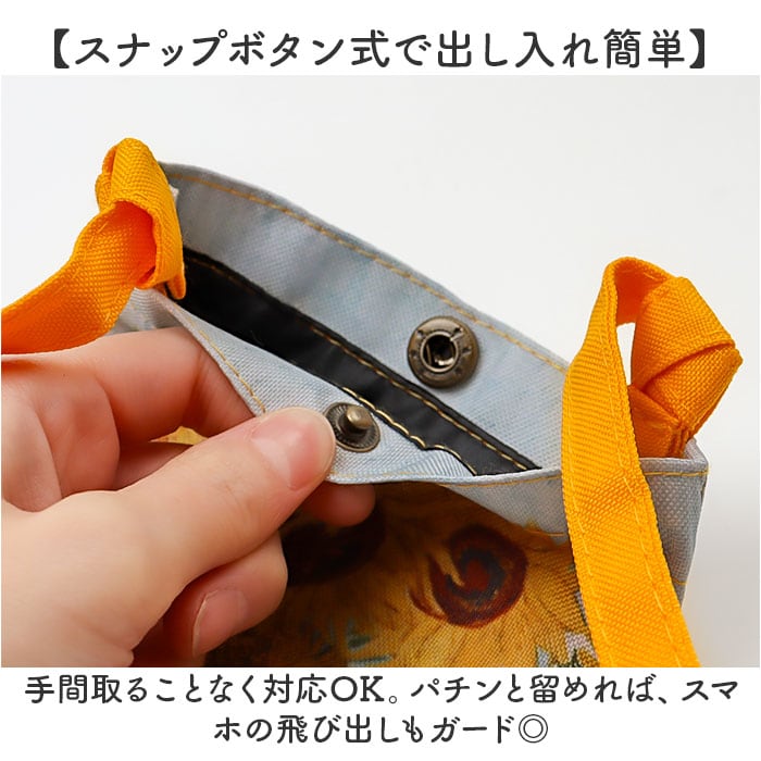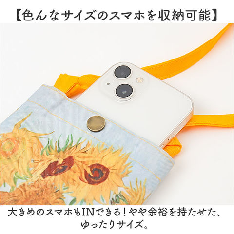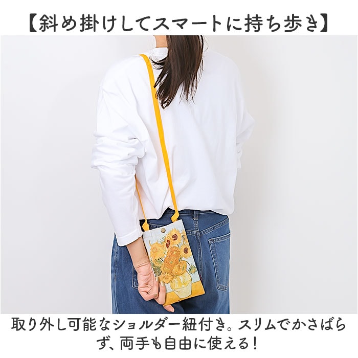 | 商品説明 | 【スマホを快適に持ち運べて便利】ポケットがなくても大丈夫!スマホをサッと取り出せる「名画 スマホショルダーバッグ」。【目を惹く華やかな名画デザイン】鮮やかな名画を全面にプリント☆持っているだけで気分も上がる、上品な風合いが魅力。【斜め掛けしてスマートに持ち歩き】取り外し可能なショルダー紐付き。スリムでかさばらず、両手も自由に使える!【スナップボタン式で出し入れ簡単】手間取ることなく対応OK。パチンと留めれば、スマホの飛び出しもガード◎【色んなサイズのスマホを収納可能】大きめのスマホもINできる!やや余裕を持たせた、ゆったりサイズ。【メインもサブも!自在に使い分け】ちょっとそこまではこれ1つで♪普段のお出かけや旅行などではサブ使いもできて万能。【絵画好きな方へのプレゼントにも】彩り溢れる名画を、いつでも持ち歩ける気分。ちょっとしたギフトにも喜ばれそう♪ |