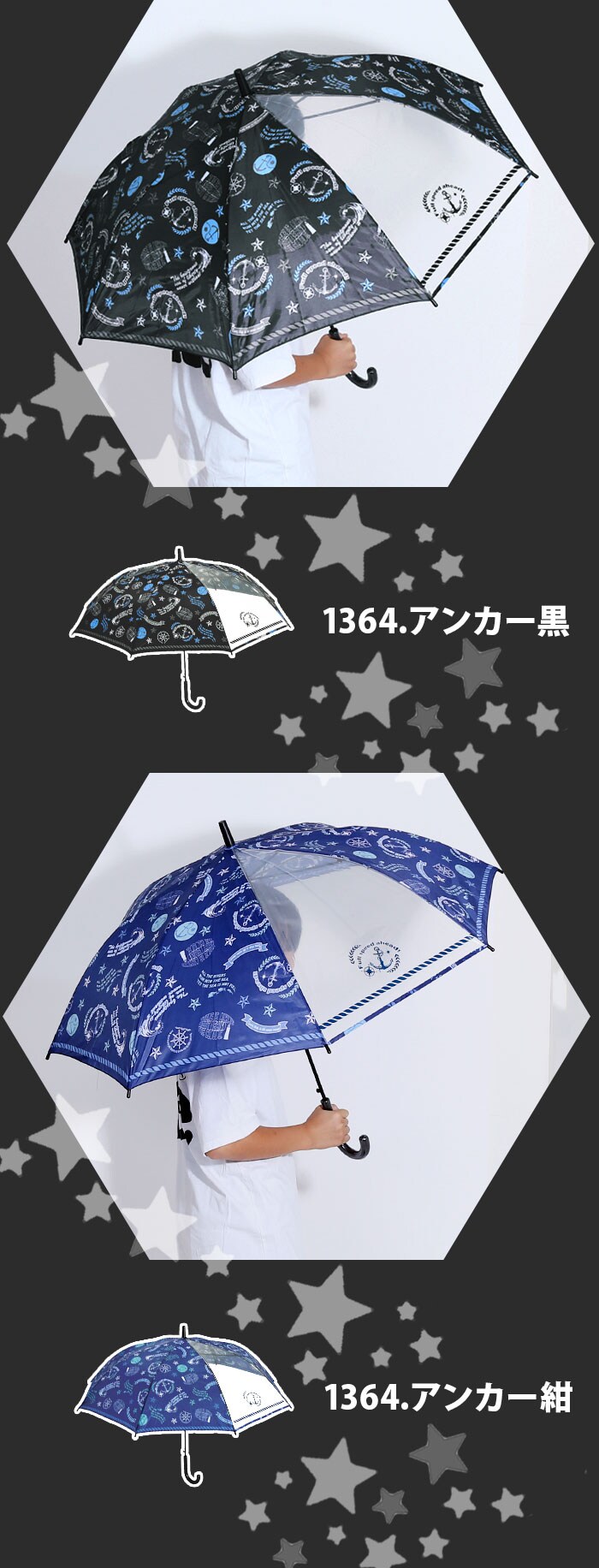 ATTAIN 男児雨傘 55cm【1364.アンカー紺】