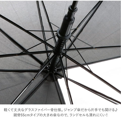 | 商品説明 | お子様の雨の日通学も安心♪2面分(2コマ)が透明になっているから視界が広く見やすい♪軽くて丈夫なグラスファイバー骨仕様。親骨55cmタイプの大きめ傘なのでランドセルも濡れにくい★一切の装飾を省いたシンプルすぎるほどシンプルなデザインで学校指定傘としても◎ジャンプ傘なので荷物で片手が塞がっていても開けるのが嬉しい。 |