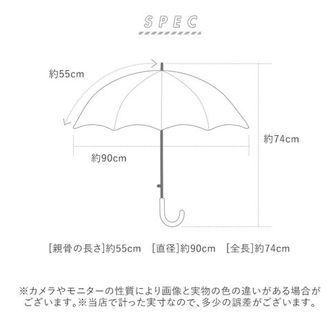 | サイズ | [親骨の長さ]約55cm [直径]約90cm [全長]約74cm ※サイズは当店平置き実寸サイズです。実際の商品とは多少の誤差が生じる場合がございます。あらかじめご了承ください。 |