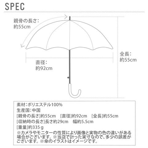 | サイズ | [親骨の長さ]約55cm、[直径]約92cm、[全長]約55cm ※サイズは当店平置き実寸サイズです。実際のサイズと多少の誤差が生じる場合がございます。ご了承ください。 |