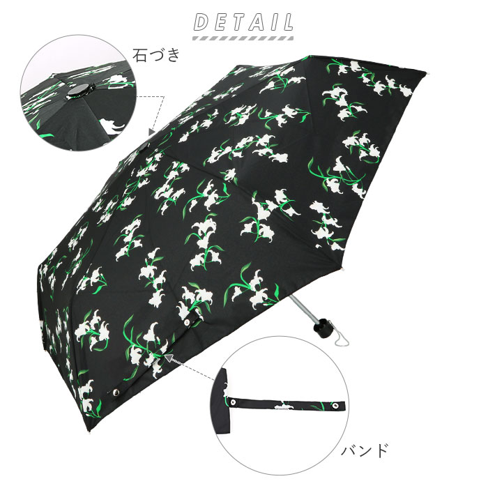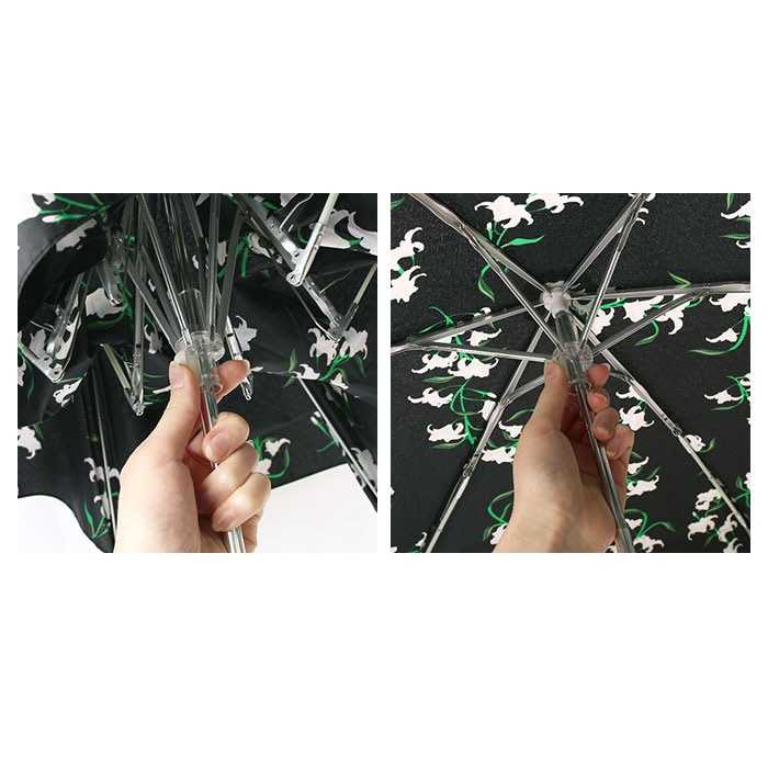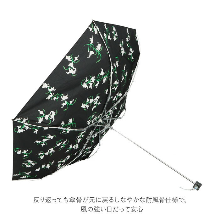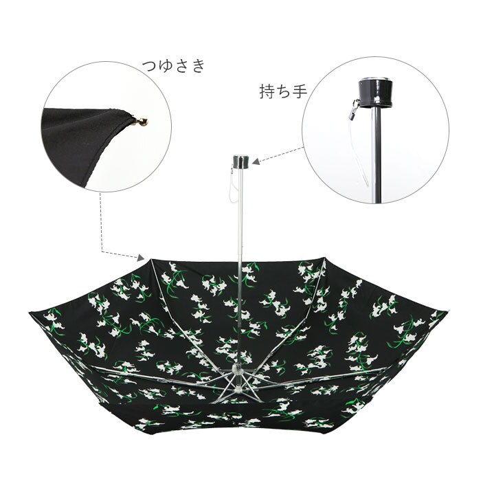 | 注意点 | 製品には尖った部分があります。常に周囲の安全を確認してご使用ください。ステッキがわりに使用しないでください。手元、または骨の先端がこわれたまま使用しないでください。振り回したり投げたりしないでください。強風時は破損する恐れがありますので使用しないでください。傘骨の構造部に手を触れないでください。傘生地は色落ちする場合もありますので乾燥が充分でない傘を服その他の物に接触させないでください。お子様には保護者からご注意ください。カメラやモニターの性質により、画像と実物の色の違いがある場合がございますのでご理解願います。 |