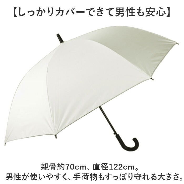 | 商品説明 | 【晴れの日も雨の日もお出かけの相棒】日傘&雨傘として使える「ATTAIN 紳士 晴雨兼用 長傘」親骨70cmタイプ。【一級遮光で晴れた日の味方】UVカット率99.9%、UPF50+!光を通しにくい生地を使い、気になる紫外線をカット。【暑い日の熱中症対策にも効果的】内側ブラックコーティング。光を反射させて温度の上昇を防ぐ遮熱効果で、照り返しもガード。(※)-18度の遮熱効果があります。人工太陽照明灯を30分照射後の数値です。【お天気が不安定な日にも対応】晴れの日だけでなく、雨の日にも使える兼用傘。どちらの天候も万能に対応。【ワンタッチでラクラクオープン】片手でサッと開きやすいジャンプ式。荷物を持っている時も、スマートに開ける◎【しなやかで丈夫なグラスファイバー】親骨は、弾力性があり折れにくいグラスファイバー。強度が高く、使い勝手抜群。【しっかりカバーできて男性も安心】親骨約70cm、直径122cm。男性が使いやすく、手荷物もすっぽり守れる大きさ。【サクッと留められるボタン式バンド】傘生地を留めるバンドは、バチンっと留めやすいスナップボタン式。【手を濡らさずに傘をたためて便利】つゆ先を束ねる口ネームバンド付き。傘の広がりを抑え、サッとたたむことが可能。【シーンを選ばないシンプルデザイン】無駄な装飾を省いた仕上がり。ビジネススタイルにも馴染むカラーバリエーション。 |