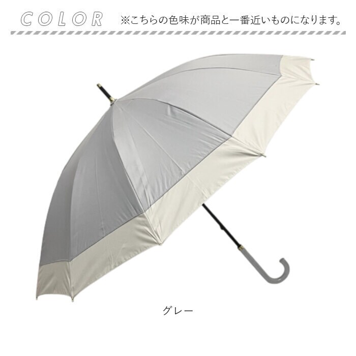 | 商品説明 | 【晴れの日も雨の日もお出かけの相棒】日傘&雨傘として使える「ATTAIN 晴雨兼用手開き 12本骨長傘」親骨55cmタイプ。【一級遮光で晴れた日の味方】UVカット率99.9%、UPF50+!光を通しにくい生地を使い、気になる紫外線をカット。【暑い日の熱中症対策にも効果的】内側ブラックコーティング。光を反射させて温度の上昇を防ぐ遮熱効果で、照り返しもガード。(※1)-18度の遮熱効果があります。人工太陽照明灯を30分照射後の数値です。【お天気が不安定な日にも対応】晴れの日だけでなく、雨の日にも使える兼用傘。どちらの天候も万能に対応。【セーフガード付きの手開きタイプ】傘生地がスムーズに開閉できる手開き傘。手指を挟みにくいよう配慮された安心設計。【しなやかで丈夫な12本骨仕様】親骨は、弾力性があり折れにくいグラスファイバー。12本骨を採用し、強度が抜群。【サクッと留められるボタン式バンド】傘生地を留めるバンドは、バチンっと留めやすいスナップボタン式。【シーンを問わないシンプルデザイン】ナチュラルなバイカラー。どんなコーデにもマッチ&エイジレスデザイン! |