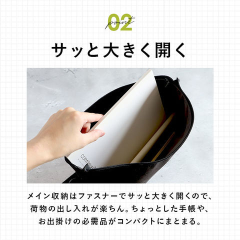 | 商品説明 | レトロな雰囲気の高密度杢調ポリエステル生地が特徴のシリーズから、サコッシュバッグが登場。ショルダー付きキャリングポーチは普段はサコッシュとして、ショルダーを外せばバックインバッグとしても使える◎メイン収納はファスナー式の開口部が大きく開くので、荷物の出し入れがしやすい。内側にはファスナーポケット×1、オープンポケット×2を装備。背面にはスナップボタン式のポケット×2とペンホルダー付き。普段使いにはもちろん、ビジネスシーンや旅行時と幅広く使えるアイテム♪ |