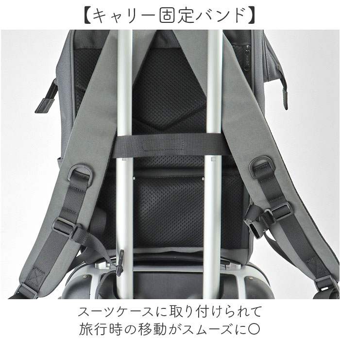 商品説明【旅行に最適な機能満載】撥水&止水ファスナーで安心、約20Lの「anello EXPAND5 エクスパンド5 口金リュック(LR)」。【撥水加工素材】雨や水濡れに強い素材で、突然の天候変化にも対応できる安心仕様◎【止水ファスナー採用】水の浸入を防ぐファスナーで、大切な荷物をしっかり守る機能性の高さ♪【約20Lの大容量】A4サイズもすっぽり入る収納力で、PCを入れられるクッションポケットも。【フロント2種のポケット】ファスナーとマグネット開閉の2つのポケットで、小物の出し入れが便利〇【両サイドにも収納】ペットボトルなどがサッと取り出せるサイドポケット付きで使い勝手抜群!【背面ポケット搭載】貴重品の収納に便利な背面ファスナーポケットで、安心して持ち歩ける。【内側オープンポケット】メイン収納内に2つのポケット配置で、荷物の整理整頓がしやすい♪【キャリー固定バンド】スーツケースに取り付けられて旅行時の移動がスムーズに〇【背面アクセス】背負ったままメイン収納にアクセスできるファスナーで荷物の取り出しが楽々。
