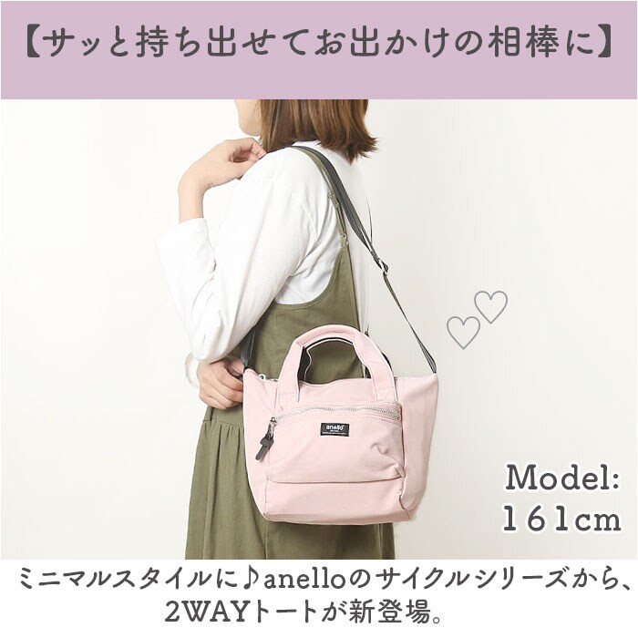 | 商品説明 | 【サッと持ち出せてお出かけの相棒に】ミニマルスタイルに♪anelloのサイクルシリーズから、2WAYトートが新登場。【風合いを生かしたシンプルデザイン】洗いシワのような、ヴィンテージ感が特徴のナイロン生地。装飾を控えて極力シンプルに。【お好みに合わせてスタイルチェンジ】手持ちはもちろん!長さ調節可能なベルトを使って、肩掛けや斜め掛けも自在な2wayタイプ。【開閉スムーズ、安心の天ファスナー】ガバっと開いて取り出しやすく、ファスナーを閉じればセキュリティ面も安心。【コンパクトだけど頼りになるバッグ】小ぶりで可愛らしいサイズ感ながら、長財布や500mlペットボトルが横向きにすっぽり。【サッと取り出せて迷子知らず】・3つのポケット配置し、バッグの中で小物を探す手間が不要。前面ポケットは立体構造◎【体に負担をかけない軽量設計】軽やかな使い心地で、移動の多い日も安心。お買い物やレジャー、旅行などでも重宝。【ちょっとの雨なら大丈夫】表面は汚れや水滴を弾きやすい、撥水加工済み。お手入れも拭き取るだけ。(※)完全防水ではありません。【お気に入りを選べるカラー】持つ人を選ばない落ち着きのあるカラー☆フロントシルバージップとの相性もばっちり。【ポケット仕様】内側:オープンポケット×2前面:ファスナーポケット×1 |