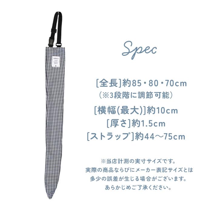 | サイズ | [全長]約85cm・約80cm・約70cm(※3段階に調節可能) [横幅(最大)]約10cm/[厚さ]約1.5cm [ストラップ]約44cm~約75cm(調節可能) ※サイズは当店計測の実寸サイズです。実際の商品ならびにメーカー表記サイズとは多少の誤差が生じる場合がございます。あらかじめご了承ください。 |