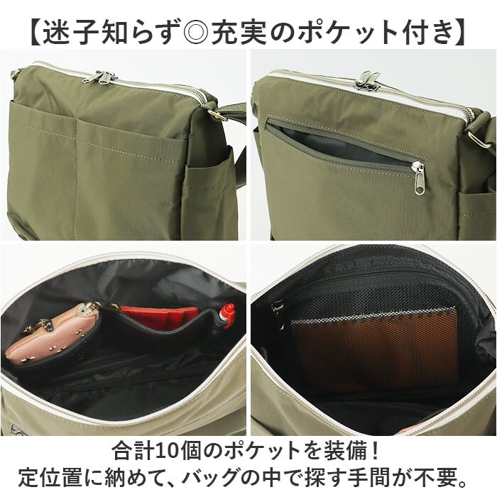 | 商品説明 | 【お出かけの相棒にぴったり】軽くて持ちやすい◎ヘビロテ間違いなしの「anello パレード 10ポケットショルダー」【軽量&撥水でアクティブシーンに】旅行やレジャーで大活躍☆サラッとした軽量ナイロンに、汚れや水滴を弾きやすい両面撥水仕様。(※)完全防水ではありません。【両手が空いてストレスフリー】ショルダーの長さを調節し、サッと肩掛けや斜め掛け。両手を自由に使えて、移動もラクラク。【ガバっと開くダブルファスナー】左右どちらからもオープン。中身を確認しやすく、出し入れスムーズ。【デイリーに使いやすい万能サイズ】A5対応、500mlペットボトルもOK。必要な物がすっきりまとまる、ちょうどいい大きさ◎【迷子知らず◎充実のポケット付き】合計10個のポケットを装備!定位置に納めて、バッグの中で探す手間が不要。【シンプルなユニセックスデザイン】金属カラーのパーツがアクセント☆持つ人を選ばない、落ち着きのあるカラーをラインナップ。【ポケット仕様】内側:ファスナー式メッシュポケット×1、メッシュポケット×2、ペン用メッシュポケット×1、サイドポケット×1前面:オープンポケット×2サイド:オープンポケット×2背面:ファスナーポケット×1 |