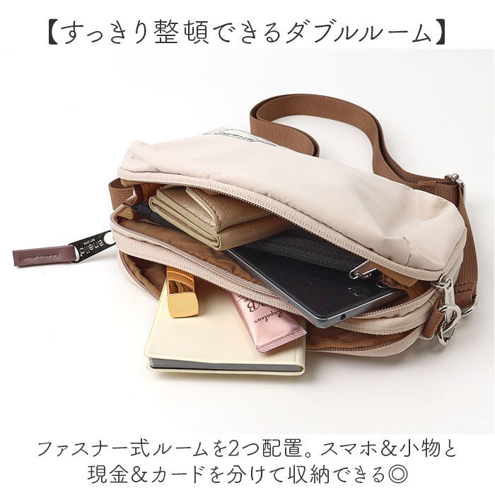| 商品説明 | 【これ1つで身軽にお出かけ♪】スマホと現金などの貴重品がひとまとめ。仕分けしやすい「anello サークル 多機能ミニショルダー」【気軽に持てる軽やか素材】なめらかなコットン調生地とやさしい色合いのデイリーカジュアルなサークルシリーズ。【すっきり整頓できるダブルルーム】ファスナー式ルームを2つ配置。スマホ&小物と現金&カードを分けて収納できる◎【ガバっと開いて出し入れスムーズ】・2つのルームは、どちらもファスナー式。大きく開いて、中身が一目瞭然。【現金もカードもたっぷり収まる】前面ルームにお財布機能を装備!小銭、お札、カードをしっかりINできて現金派にも嬉しい大容量。【スマホや鍵などの小物を一緒に】背面ルームはスマホがすっぽり。スマートにお出かけでき、なくしがちな小物も迷子知らず。【両手が空いてストレスフリー】長さ調節可能なショルダーを取り付けて、肩掛けや斜め掛け。アクティブシーンでも快適。【雨の日も安心のはっ水加工】表面に水滴や汚れをサッと弾くはっ水加工を施しているから、急な雨でも安心♪(※)完全防水ではありません。【街にも馴染む大人カラー】落ち着いた色味が魅力のラインナップ。どんなコーデにも合わせやすく、年代を問わず活躍! |