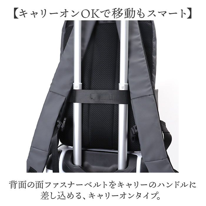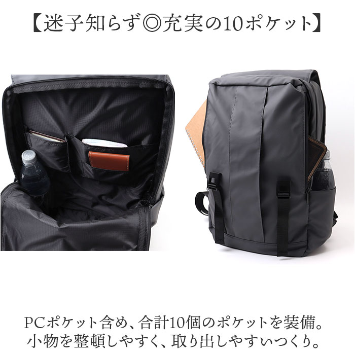 | 商品説明 | 【使い勝手バツグンな心強い相棒】色んなシーンで活躍!「anello エムエフガンマ 多機能フラップリュック」。【いつでもスマートにスタイリング】満員電車などの人混みでも邪魔になりにくい、スリムフォルム。通勤・通学にぴったり!【フラップ&ファスナーのダブル開口】ダブルファスナー&磁石の力を利用してワンタッチ着脱できる、マグネットバックル式フラップ!【A4対応ですっきりひとまとめ】A4サイズがすっぽり。お出かけに必要な物が1つにまとまる、容量約17Lサイズ。【ノートPCも安定した状態で持ち運び】背面のポケットに15.4インチまでのノートPCを独立収納。クッション内蔵で衝撃をガード。【迷子知らず◎充実の10ポケット】PCポケット含め、合計10個のポケットを装備。小物を整頓しやすく、取り出しやすいつくり。【負担をかけず背負い心地快適】背面とショルダーベルトにはクッション性をプラス。どちらもムレにくいメッシュ仕様。【アクティブに動くシーンでも安心】ズリ落ちを防ぐチェストベルト。ワンタッチで装着でき、自転車移動などでも安定感をキープ。(※)スナップボタンで取り外し可能です。【キャリーオンOKで移動もスマート】背面の面ファスナーベルトをキャリーのハンドルに差し込める、キャリーオンタイプ。【雨の日も安心の耐水性をプラス】水を通しにくい生地を使用。お天気の不安定な日や、移動の多い日にもおすすめ。(※)完全防水ではありません。【お揃いで持てるユニセックス仕様】使う人を選ばないシンプルデザイン&カラーリング☆家族やカップルで、お揃いやシェアもOK。【ポケット仕様】内側:オープンポケット×3、サイドギャザーポケット×2前面フラップ内:縦ファスナーポケット×2メインルーム背面:ダブルファスナー式クッションポケット×1サイド:オープンポケット×2 |