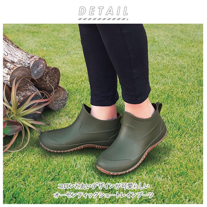 | 商品説明 | コロンと丸いデザインが可愛らしい、オーセンティックショートレインブーツ。くるぶしまでガードするハイカットデザインで、雨の侵入を防止。脱ぎ履きがスムーズにできるプルストラップ付き。ハニカム構造のクッションインソールが、足裏に優しくフィット。(※インソールは取り外しが可能。)しっかり溝の刻まれたグリップ力抜群のソールで滑りにくい!雨の日のお出かけ用に。ガーデニングやアウトドアにも大活躍。コーディネートに合わせやすいベーシックカラー。 |