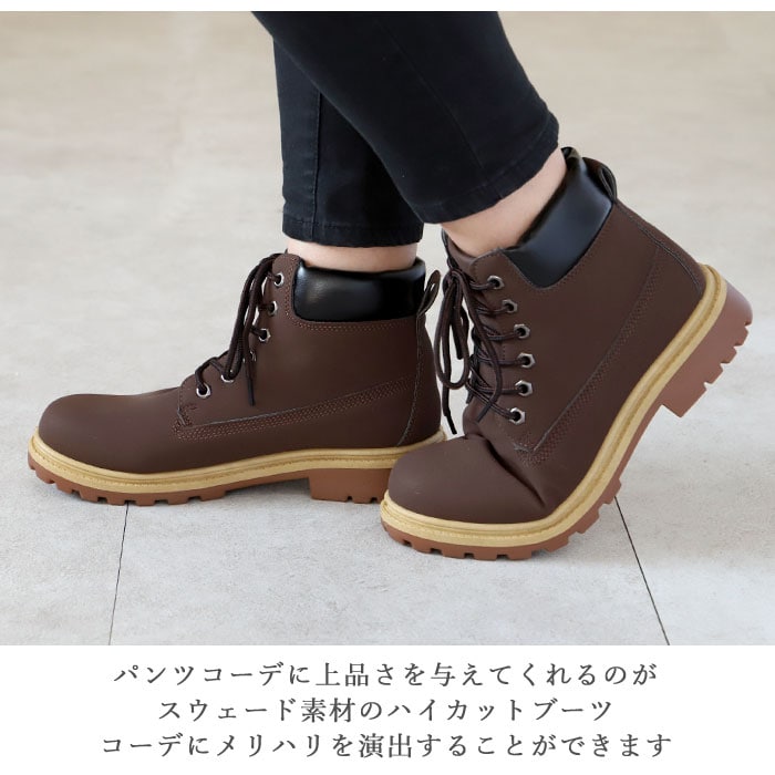 | 商品説明 | アウトドアスタイルの足元がお洒落にキマる!人気のANYWALKから、アメカジの定番「ハイカットブーツ」が新登場。丸みのあるつま先のフォルムと、靴紐を通すハトメ穴が6つ設けられたクラシックスタイルが印象的なレースアップブーツ。シューズ全体を手触りの滑らかなスエード調生地で仕上げたスタイリッシュな外観が魅力。お手入れのしやすいフェイクレザー素材だから、水濡れや汚れにも強い!ふんわりクッション素材を履き口に使用することで、ハイカットブーツならでは足首のホールド感と動きやすさを両立!靴底にはしっかり溝の刻まれた合成底を採用。ウェルト部分に縫い目がない仕様になっているため、雨の日にも履きやすく本格アウトドアにも大活躍。22.5cmから29cmまでの豊富なサイズ展開で、性別や世代を問わず幅広く着用いただける定番デザイン。ファッションにアウトドアテイストを加えたい時、カップルやファミリーでリンクコーデする時にオススメ! |