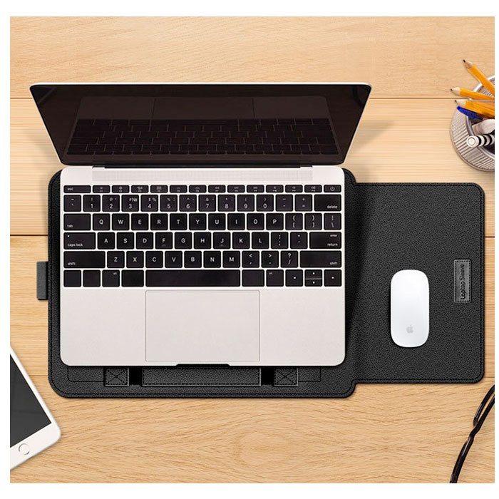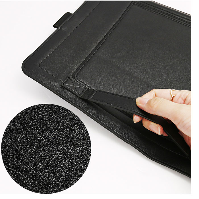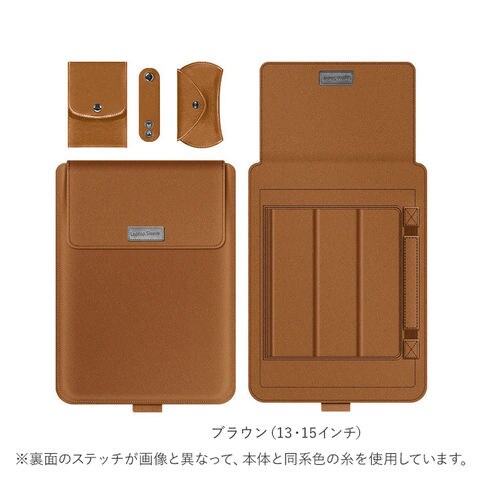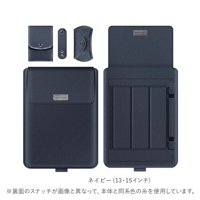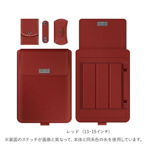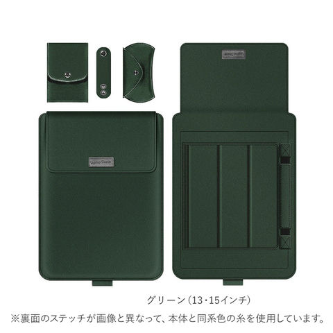 | 商品説明 | コワーキングスペースでのPC作業にぴったり!MacノートPCを、キズや衝撃から保護する「スリーブカバー(13インチ・15インチ)」が新登場。ノートPCをスタイリッシュに持ち運ぶことができるスリーブカバー。さらにPCスタンドやマウスパッドとしても使える多機能性がこの商品の魅力。ノートPCを傾斜させて使うことができる「スタンド機能」は、PC裏側に熱がこもることを防ぎ、タイピングをよりスムーズに!使い方は、PC手前側にハンドストラップをあてて、PCの後ろ側をスタンドパーツで支えるだけ。スタンドパーツはマグネットでしっかり固定することが可能。またフラップ部分はマウスパッドとして使えるので、スリーブカバーを広げるだけであっという間にテーブルの上がお仕事空間に。素材は床革(本革)の表面にポリウレタン樹脂を施した「スプリットレザー」を採用。高級感のある見ためと防水性能を兼ね備えたハイブリット素材だから、ビジネスシーンにしっかりと対応。さらに革表面にキズが付きにくいのも嬉しい特徴。内装には柔らかな生地を用いることで、大切なPC本体をソフトに保護。カバーのフラップは面ファスナーで簡単に開閉が可能。持ち運びに便利なマウスケースとケーブルケース及びコードを束ねるハンドストラップ付き。(※macbook専用です。)遊び心をくすぐるお洒落なカラーバリエーション。お好みのものをチョイスして! |