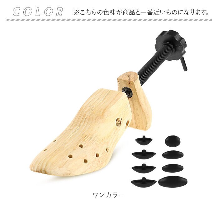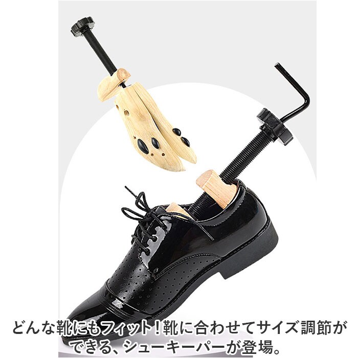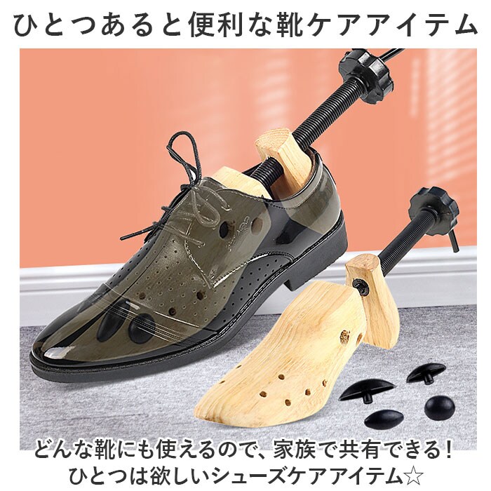 | 商品説明 | どんな靴にもフィット!靴に合わせてサイズ調節ができる、シューキーパーが登場。【幅、奥行き、高さ、全て調節可能◎】靴のカタチに合わせて全方位、調節が可能。これ1つでフォーマル靴もスニーカーもキープ!【細部までフィットするチップ付き】つま先の細部までフィットさせられる、チップ付き。サポート穴に挿すだけでつま先潰れを防止。【ナチュラルな木製がおしゃれ】玄関に置いてもおしゃれな、ウッディ感が魅力。景観を邪魔しないので使いやすい。【ひとつあると便利な靴ケアアイテム】どんな靴にも使えるので、家族で共有できる!ひとつは欲しいシューズケアアイテム☆【1足分もご用意があります!】左右同時に使える、1足分のセット販売もご用意。他ページにて販売中! |