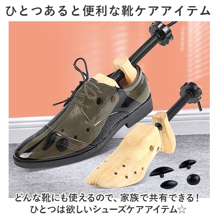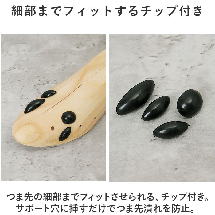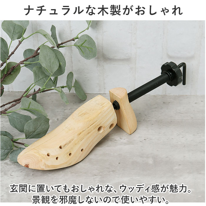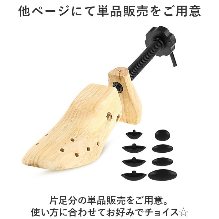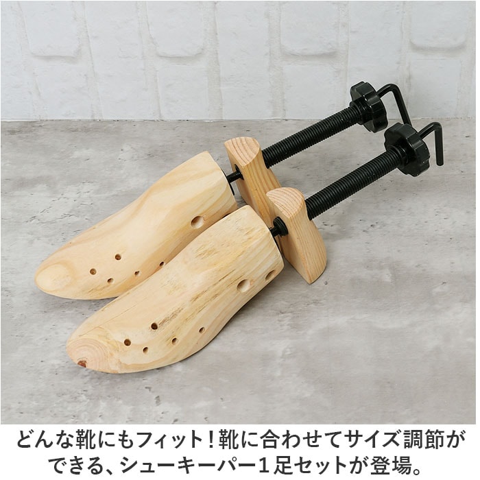 | 商品説明 | どんな靴にもフィット!靴に合わせてサイズ調節ができる、シューキーパー1足セットが登場。【幅、奥行き、高さ、全て調節可能◎】靴のカタチに合わせて全方位、調節が可能。これ1つでフォーマル靴もスニーカーもキープ!【細部までフィットするチップ付き】つま先の細部までフィットさせられる、チップ付き。サポート穴に挿すだけでつま先潰れを防止。【ナチュラルな木製がおしゃれ】玄関に置いてもおしゃれな、ウッディ感が魅力。景観を邪魔しないので使いやすい。【家族で共有できるアイテム】ひとつは欲しいシューズケアアイテム。どんな靴にも使えるので、家族で共有するのもGOOD。【他ページにて単品販売をご用意】片足分の単品販売をご用意。使い方に合わせてお好みでチョイス☆ |