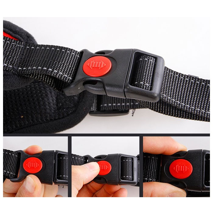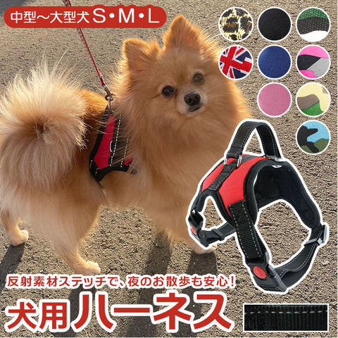 | 商品説明 | お散歩が大好きなワンちゃんに!大きなワンちゃんでも使えるタフなドッグ用ハーネスが新登場。幅広バックルベルトで首周りとお腹周りの2ヶ所をしっかりホールドするスタイルで、ハーネスの着脱もラクラク!ロック付きバックルがお散歩中のベルトの外れを防いでくれるので、力のある大型のワンちゃんでも安心。身体に当たる内側の生地には通気性のよいメッシュ素材を採用。春夏の暑さが気になる季節や、いっぱい歩くワンちゃんでもハーネスの内側はサラサラと快適。背中部分にリードがしっかり接続できるDカン金具を装備しているほか、信号待ち時や車道でのワンちゃんの急な飛び出しを防ぐハンドル付き。ベルト部分はワンちゃんの身体の大きさに合わせて長さ調節が可能。反射素材のステッチを施し、夜のお散歩も安全に。リードで引っ張られる力を、胸や肩など身体全体で受け止めるハーネスタイプだから、ワンちゃんの身体への負担を優しく軽減。中型犬から大型犬まで幅広く着用できるS・M・Lの3サイズ展開。 |