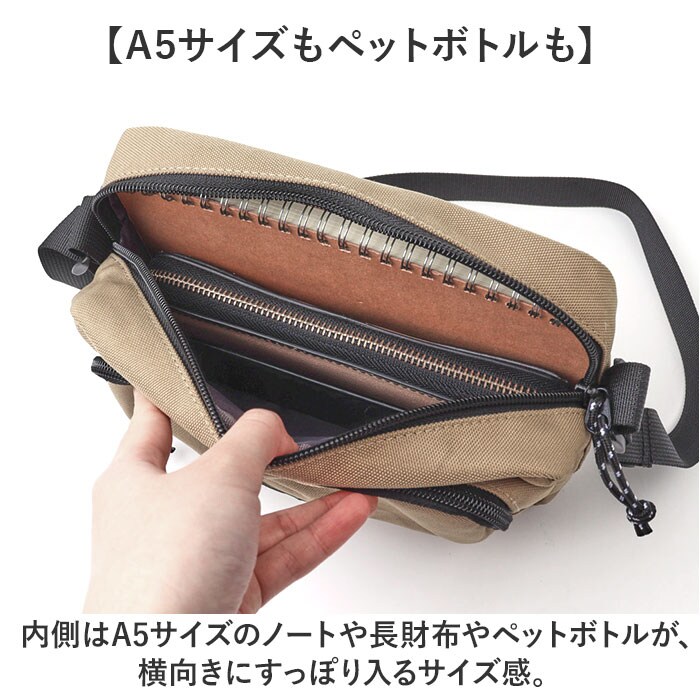 | 商品説明 | 【フロントポケットがアクセント】フロントポケットがアクセント。カジュアルスタイルにマッチするミニショルダーの登場。【ユニセックスで使えるデザイン】シンプルを極めたスタイリッシュデザイン!ユニセックスで使えるカラーラインナップ!【必要最低限のアイテムをIN】ミニ財布やスマホ、エチケットグッズなどをひとまとめ。旅行やフェスなどでも重宝。【A5サイズもペットボトルも】内側はA5サイズのノートや長財布やペットボトルが、横向きにすっぽり入るサイズ感。【安心のファスナー開口】開口部はファスナー式。中身がこぼれ落ちることなく、プライバシーを確保。【長時間の移動もラクラク】身体に負担がかかりにくい軽量設計。両手が空くので、自転車移動やお子さまとのお出かけにも!【軽くて丈夫なのでガシガシ使える】バッグの重さはわずか約168gと軽量!デイリーからアクティブシーンにも活躍◎【ちょっとの雨なら大丈夫】表面は汚れや水滴を弾く撥水加工済。お手入れもサッとでOK。(※完全防水ではありません。)【ポケット仕様】フロント:ファスナーポケット×1メイン収納:オープンポケット×1 |