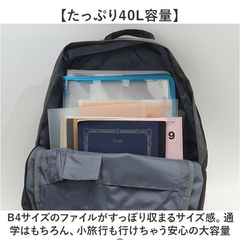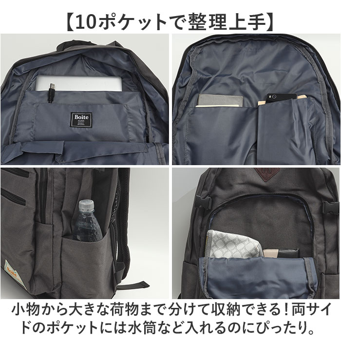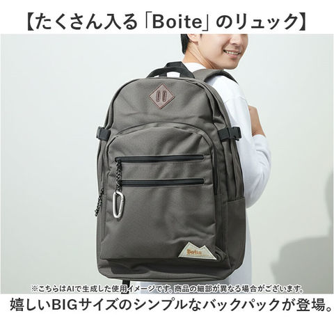 | 商品説明 | 【たくさん入る「Boite」のリュック】嬉しいBIGサイズのシンプルなバックパックが登場。【たっぷり40L容量】B4サイズのファイルがすっぽり収まるサイズ感。通学はもちろん、小旅行も行けちゃう安心の大容量◎【撥水加工で安心】水をはじきやすい素材で突然の雨でも安心、汚れに強いのもポイント〇(※完全防水ではありません。)【10ポケットで整理上手】小物から大きな荷物まで分けて収納できる!両サイドのポケットには水筒など入れるのにぴったり。【背面直結ファスナー】メイン収納に素早くアクセスできて機能性抜群!【シンプルデザイン】大容量&軽量設計。ユニセックス、エイジレスで使えるシンプルなデザインが嬉しい♪ |
