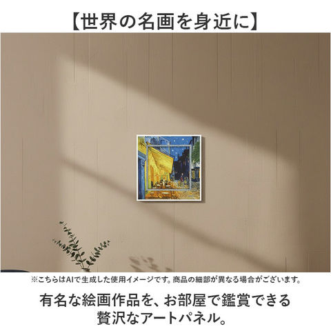 | 商品説明 | 【名画が飛び出す立体感】フレーム一体型で迫力満点、お部屋を彩る壁掛けビッグアート。【絵と額の一体型デザイン】フレーム部分まで絵が描かれおり、まるで名画が壁から飛び出すような迫力ある仕上がり。【色褪せない美しさ】UVプリント仕上げで、いつまでも鮮やかな発色をキープし長く愛用できる。【世界の名画を身近に】有名な絵画作品を、お部屋で鑑賞できる贅沢なアートパネル。【手軽に飾れる】フレームの吊り金具に付属の紐を結べば、好きな場所に掛けるだけの簡単設置。 |
