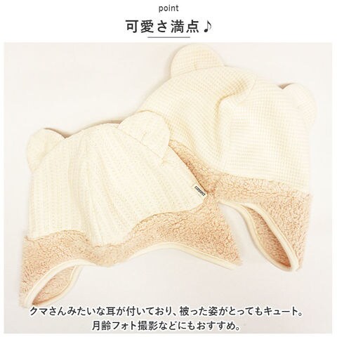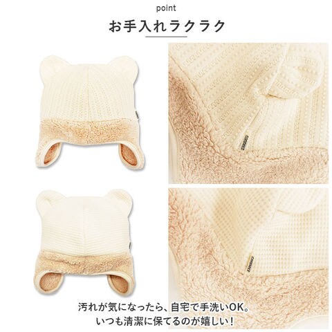 | 素材 | 【クマ耳×ワッフル・クマ耳×レース】】 [本体]綿100%(オーガニック) [ボア]ポリエステル100% 【クマ耳×オフホワイト・クマ耳×杢グレー】 [本体]綿88%、ポリエステル12% [ボア]ポリエステル100% [裏地]綿100%(オーガニック) 【クマ耳×レッド・クマ耳×ブラウン・クマ耳×グレー】 [チェック/裏地]綿100%(オーガニック) [ボア]ポリエステル100% 【恐竜×ブルー・恐竜×グレー】 [ドット]綿88%、ポリエステル11%、ポリウレタン1% [ボア]ポリエステル100% [つの]綿95%、ポリウレタン5% [裏地]綿100%(オーガニック) |