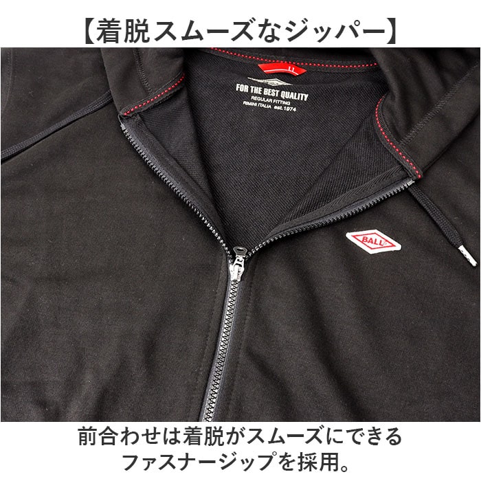 | 商品名 | BALL 裏毛 ワッペン付きフルジップパーカー |
