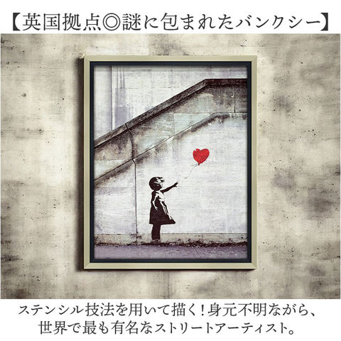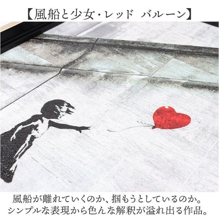 | 商品説明 | 【おしゃれに彩るこなれたアート】日常にダークユーモアを。アートを引き立てるフレーム付き「バンクシー レッド バルーン」。【英国拠点◎謎に包まれたバンクシー】ステンシル技法を用いて描く!身元不明ながら、世界で最も有名なストリートアーティスト。【多くのファンを集める逸材】政治的社会的テーマを訴える作品が特徴。人々の興味を惹きつける奇抜な存在。【風船と少女・レッド バルーン】風船が離れていくのか、掴もうとしているのか。シンプルな表現から色んな解釈が溢れ出る作品。【まるで壁画のような仕上がり】表面に特殊ゲル加工を施し、奥行約35mmのフレームがアートを立体的に見せる☆【空間にアクセントをプラス】フレームの吊り金具に、付属の紐を結びつけて壁掛け。気軽に飾れるのが嬉しい!【保護ガラス不要で軽やかなつくり】表面に加工を施すことで、色彩がより鮮やかに。保護用のガラスいらずで壁掛けもラクラク。【サッと拭き取れてお手入れ簡単】耐久性のある透明ゲルコーティング。乾いた布で、ササッと汚れを拭き取ることが可能。 |
