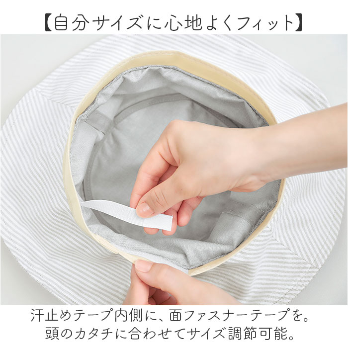 | 商品説明 | 【こだわりのアイテムを相棒に】日差しの気になる季節に◎職人が丁寧に手仕上げした「布工房播州織 ツバ広UVハット」。【綿素材ならではの涼やかさが特徴】涼しげな生地感の綿100%素材。サラリと柔らかな質感で、被り心地も軽やか◎【日本製◎播州織のシャンブレー生地】兵庫県西脇市を中心に生産される先染め織物。霜降りのような美しい風合いに仕上げた平織生地。(※1)先染めした色糸をタテ糸に、白い糸をヨコ糸に使用することで、美しい風合いを表現。【UVカット効果で日差しをガード】UVカット率99%。直射日光が当たるのを防ぎ、アクティブシーンにもおすすめ。(※2)糸自体にUV加工を施しているため、洗濯しても効果は変わりません。【お顔をカバーしアレンジも自在】約9cmのツバ広設計で、お顔まわりをガード。ツバ先にはワイヤー入りで、アレンジもOK!【ストライプ柄でお顔まわりを明るく】表地は無地、ツバ裏は爽やかなストライプ柄。お顔をパッと明るく見せてくれる♪【自分サイズに心地よくフィット】汗止めテープ内側に、面ファスナーテープを。頭のカタチに合わせてサイズ調節可能。【汚れが目立ちにくく抗菌防臭加工も】汗止めテープは、メイク汚れが目立ちにくい肌色。抗菌防臭加工済みで衛生的。【手洗いできてお手入れがカンタン】汚れや汗が気になったら、自宅で手洗い可能。お手入れしやすく、清潔をキープ。【コンパクトに持ち運べて便利】くるくる丸めて、すっきりバッグイン!旅行などへの持ち歩きもラクラク。 |