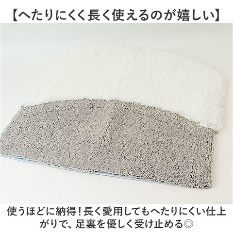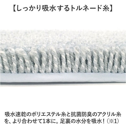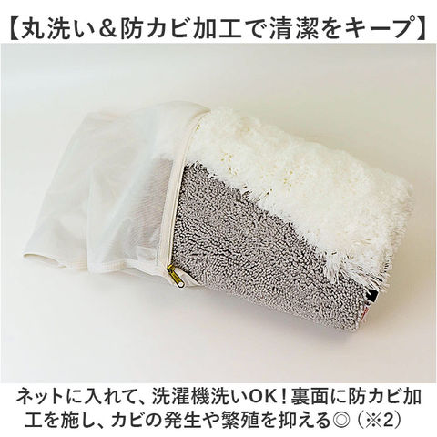 | 商品説明 | 【至福の2度拭きで快適な使い心地】・2種のマットを1枚に♪「実はすごいバスマット ニド」50x50cmサイズ。【2ステップ吸水!さっぱりふわふわ】しっかり吸水するトルネードマット&足触りが心地良い極細ポリエステル糸マットで至福の体験☆【しっかり吸水するトルネード糸】吸水速乾のポリエステル糸と抗菌防臭のアクリル糸を、より合わせて1本に。足裏の水分を吸水!(※1)さっぱりした短めのパイルで吸水します。【へたりにくく長く使えるのが嬉しい】使うほどに納得!長く愛用してもへたりにくい仕上がりで、足裏を優しく受け止める◎【ふんわり吸水、極細ポリエステル糸】脚が沈み込む程長めのパイルが足指の間に残った水分を優しく吸水。ボリュームのある踏み心地。【滑りを防いで安全面にも配慮】裏面には滑りにくい加工をプラス。マットのズレを軽減できるのもポイント。【丸洗い&防カビ加工で清潔をキープ】ネットに入れて、洗濯機洗いOK!裏面に防カビ加工を施し、カビの発生や繁殖を抑える◎(※2)全てのカビ菌に対して効果があるわけではございません。洗濯機の弱モードを使用してください。一部のドラム式洗濯機では、洗濯や脱水ができない場合がございます。【空間に馴染むナチュラルカラー】温かみのある風合いを演出する、カラーバリエーション。バイカラーがアクセント♪ |