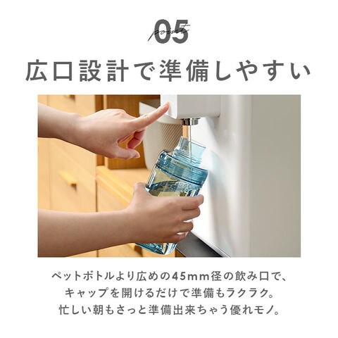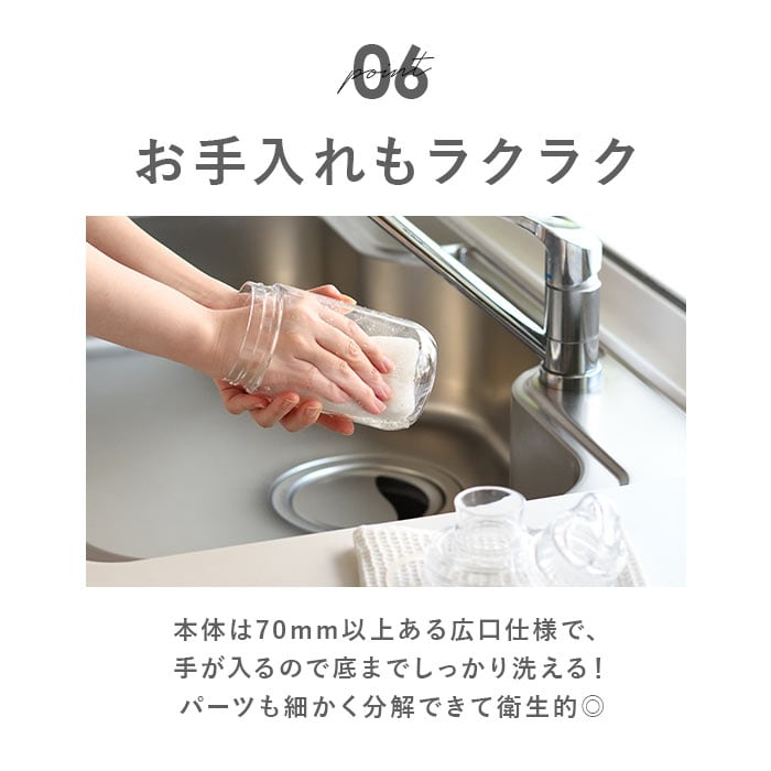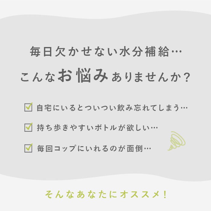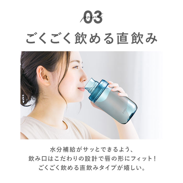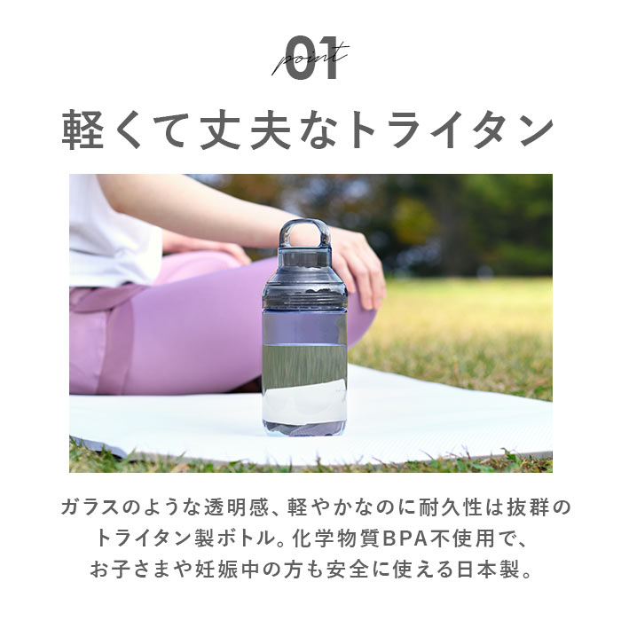 | 商品説明 | 【なんて、しあわせな飲みごこち♪】おしゃれに持ち歩ける!軽量で割れにくい「LIPPY ウォーターボトル 700ml」。【軽くて丈夫なのに壊れにくい◎】キャップ・飲み口・本体はトライタン製!ガラスのような透明感、軽やかなのに耐久性は抜群。(※)トライタン・・・Tritan(TM)【環境に配慮◎安心のBPAフリー】化学物質BPA不使用!お子さまや妊娠中の方も安全に使える日本製ボトル。【リップラインの口当たりが心地よい】こだわりの飲み口は、唇の形にフィット!ペットボトルより広めの45mm径でゴクゴク直飲み☆【朝のドリンク準備もスムーズ】キャップだけ外して、ササっと注げるつくり。ウォーターサーバーからもラクラク。【お手入れしやすく清潔をキープ】本体は70mm以上ある広口仕様で、底までしっかり洗える!パーツも分解できて衛生的◎【水分補給量を一目で確認OK】・200ml~500mlまでのメモリ付き。飲む量を把握できるのも、嬉しいポイント。【色んなシーンで使える700ml】ヨガなど体を動かすシーンで、サウナなどの水分補給にも最適な、容量700mlサイズ。【開けやすく持ち運びもスマート】キャップの上部にはリングハンドルを装備。開ける時も回しやすく、サッと手に取って持ち運び。【使う人を選ばないクリアカラー】年代や性別問わず持ちやすい、すっきり爽やかなカラーリング。家族で色違い揃えも☆ |