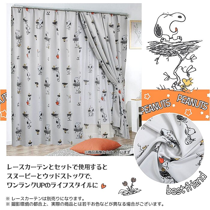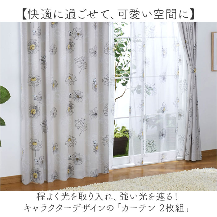 キャラクター カーテン 2枚組【スヌーピーフラワー】【100x135cm】