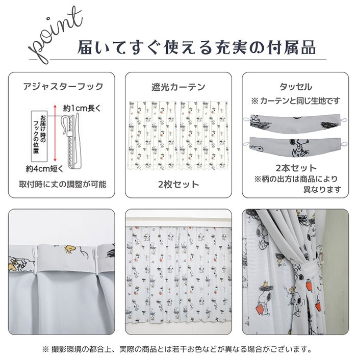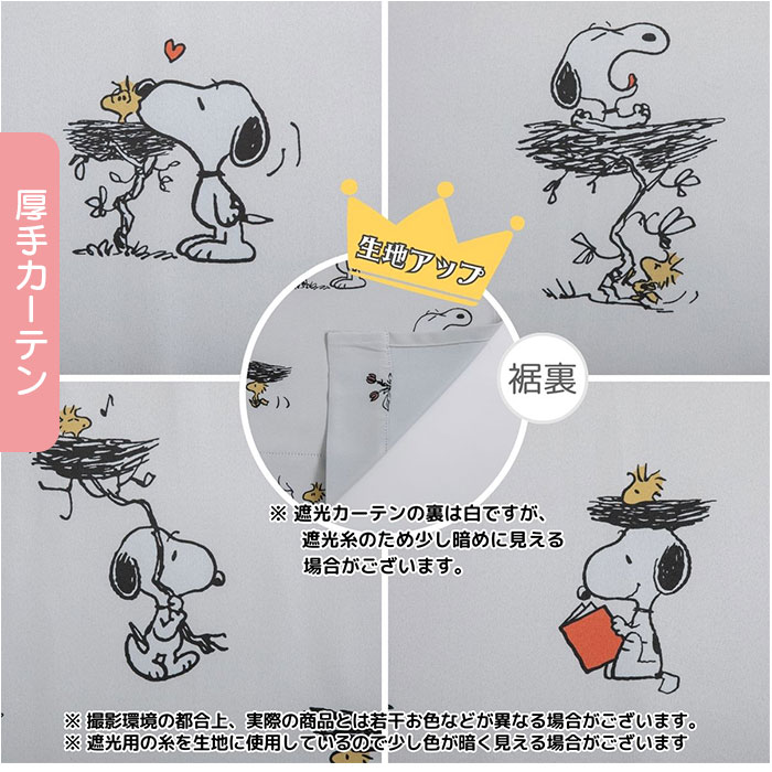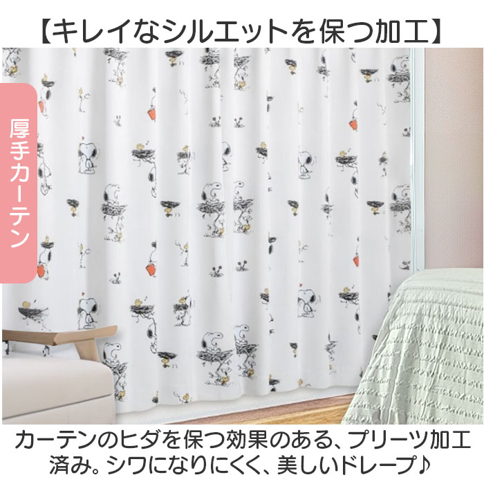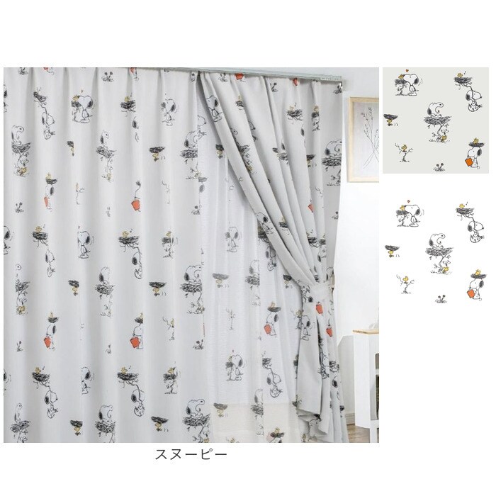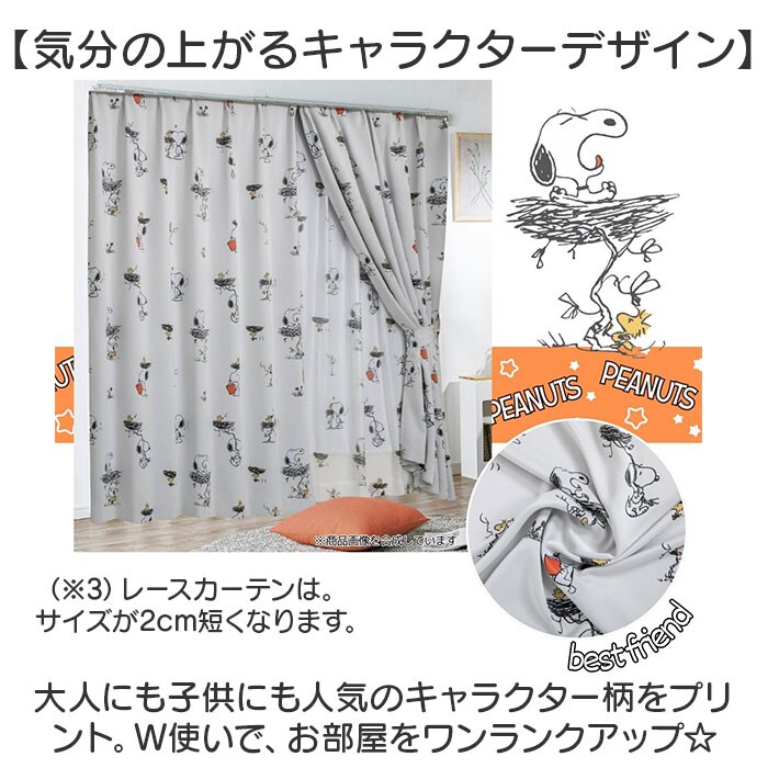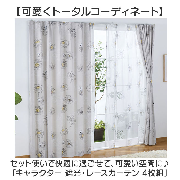 キャラクター 遮光・レースカーテン 4枚組【スヌーピー】