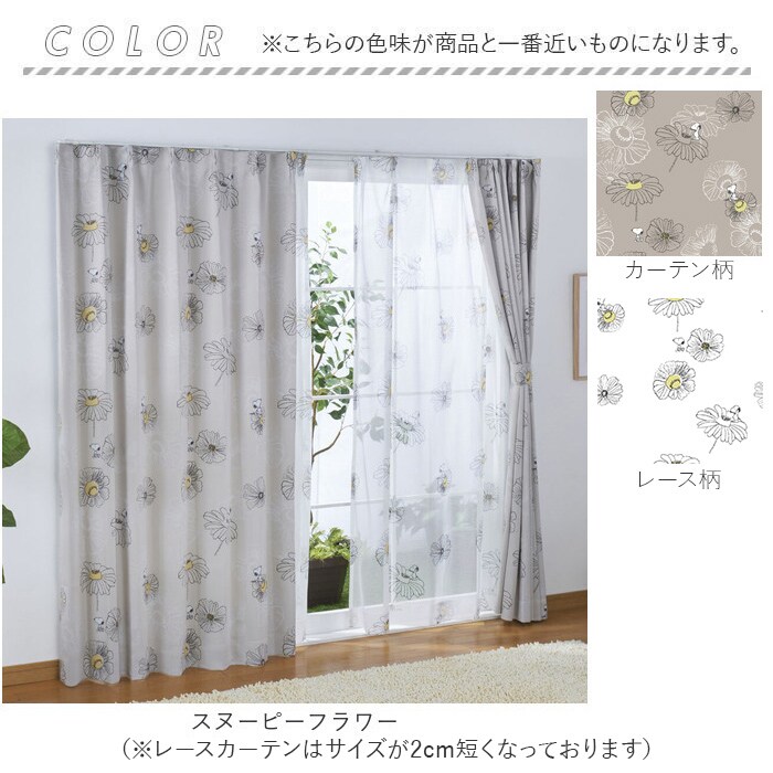 キャラクター 遮光・レースカーテン 4枚組【スヌーピーフラワー】