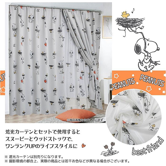 キャラクター レースカーテン 2枚組【スヌーピー】